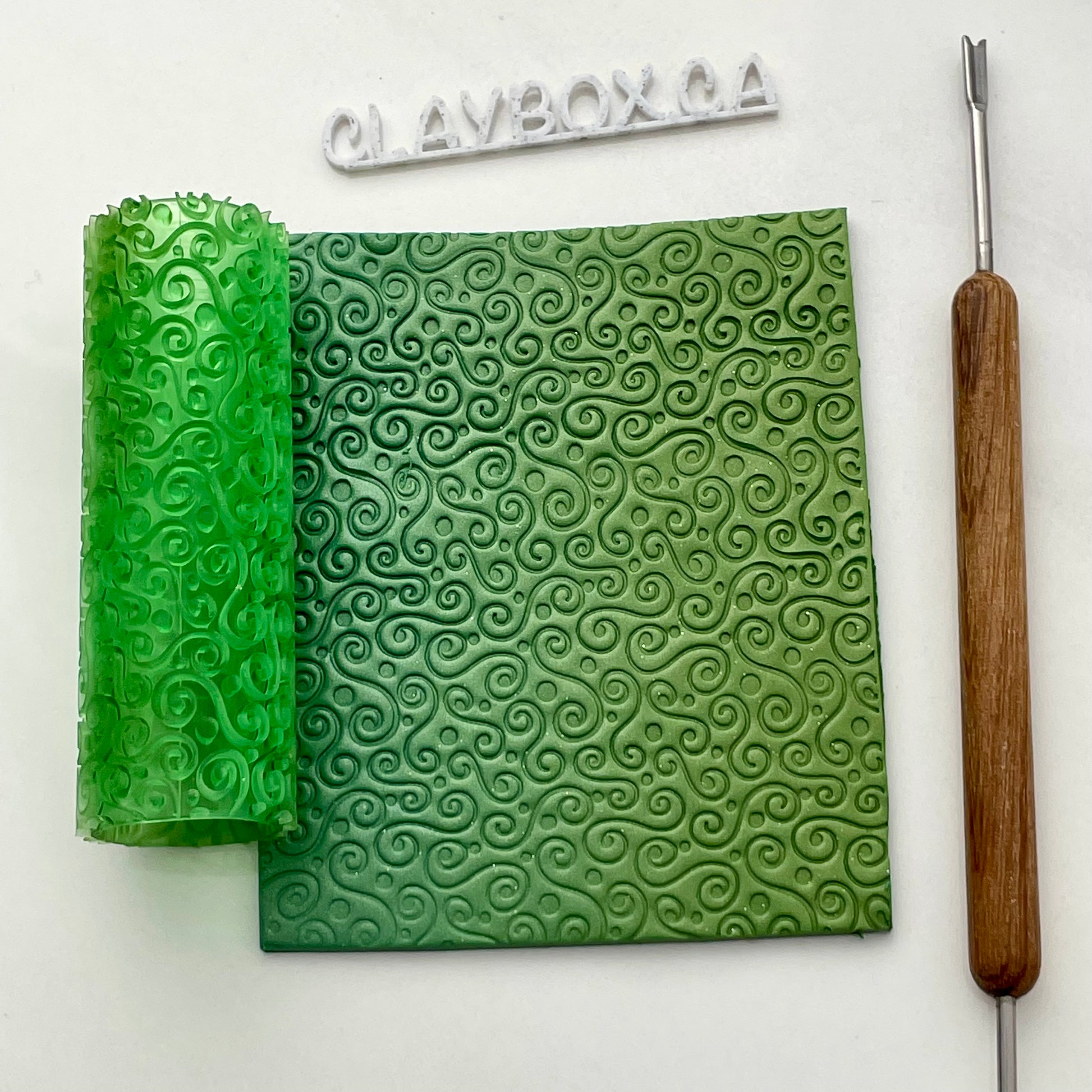This is a roller designed to make an imprint in polymer clay. The design is quite deep at 2mm. The roller is 8.5cm (3.3") tall and approx 2.5cm (1") wide.
