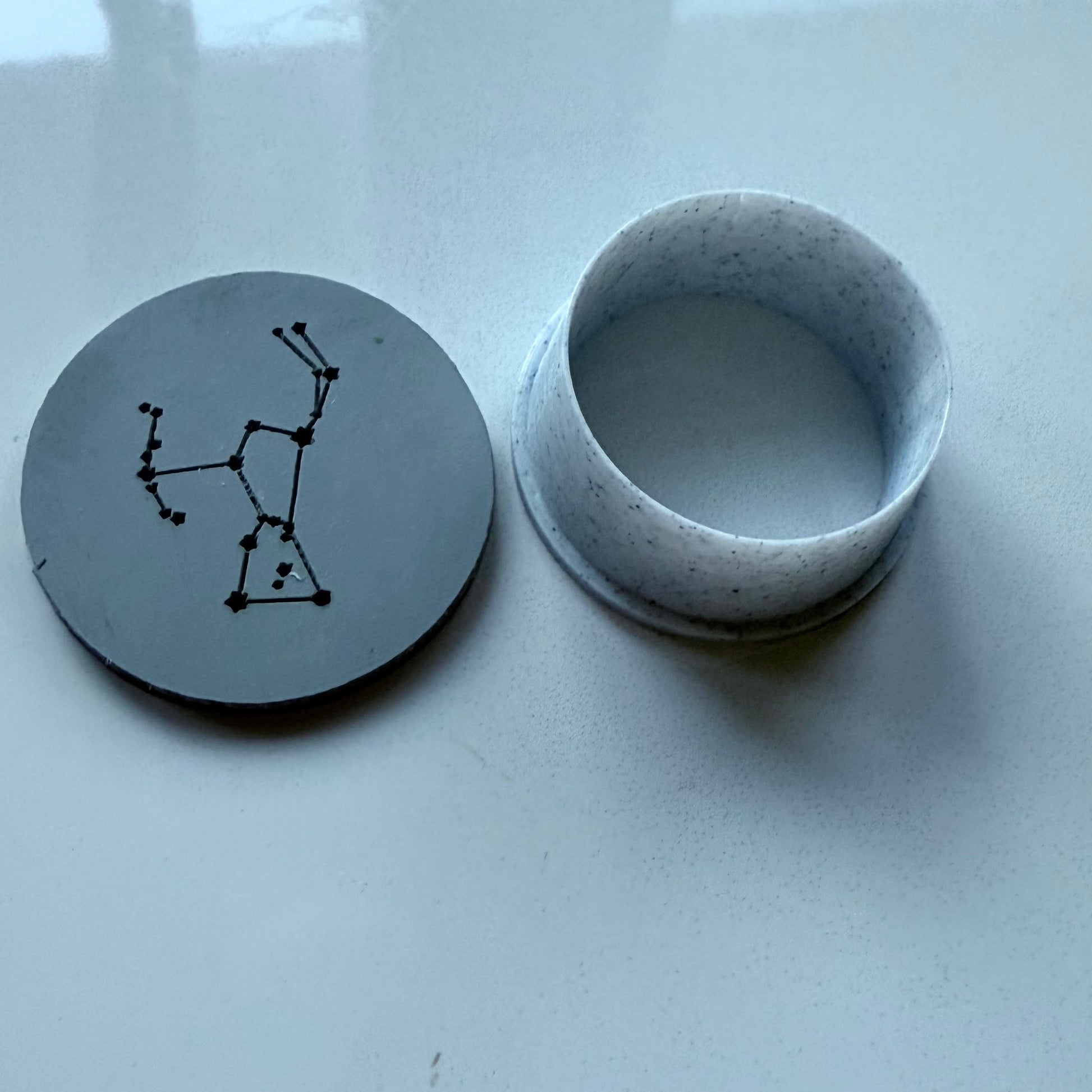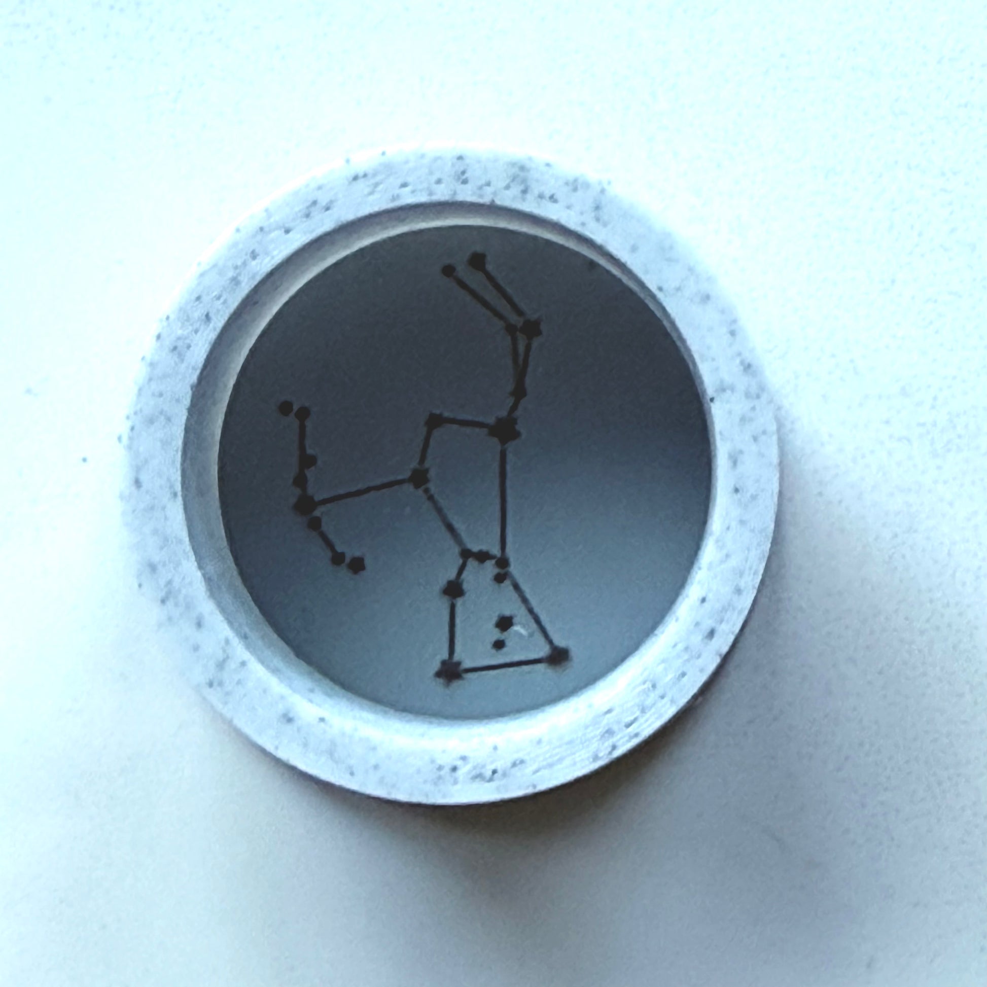 2.2cm Orion stamp and 2.7cm circle cutter, as per pic