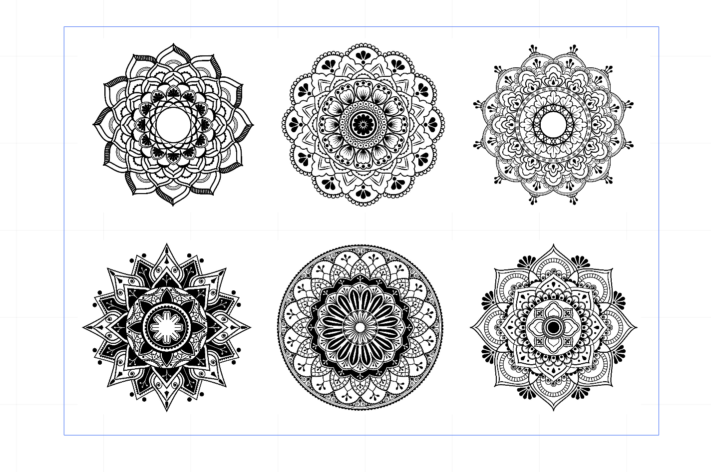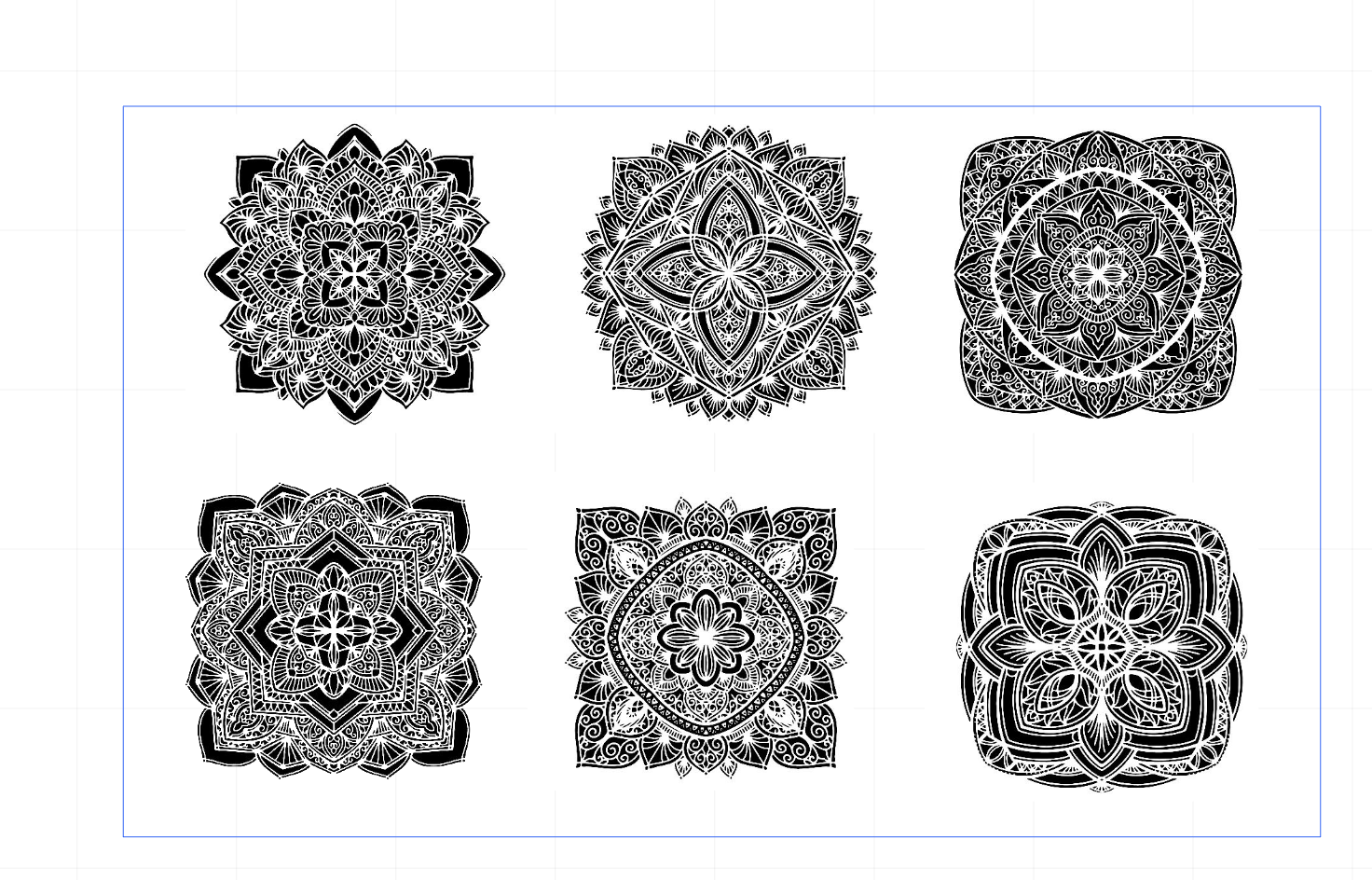 Five mats (~2" x 3") with six 2cm mandalas on each $75