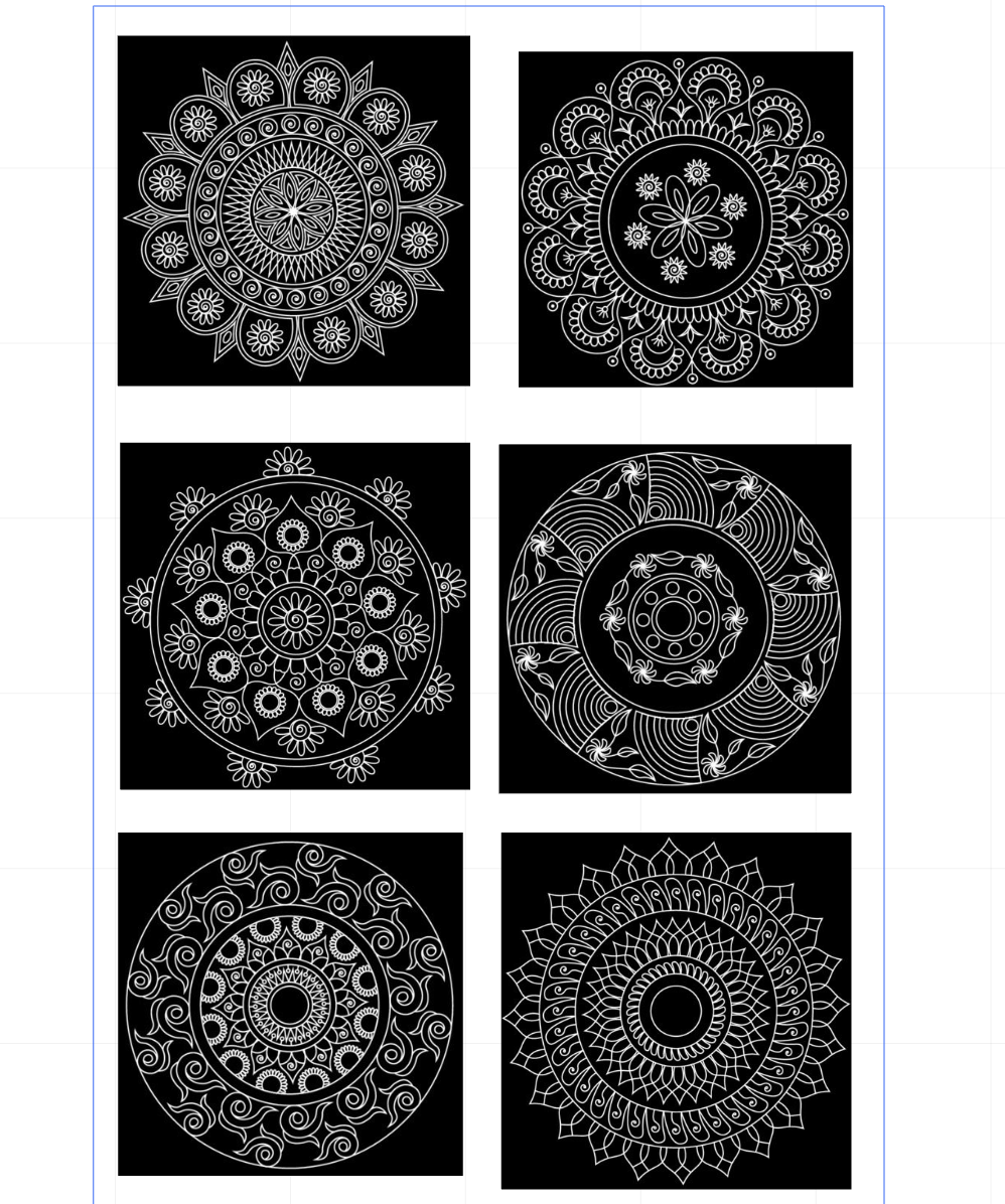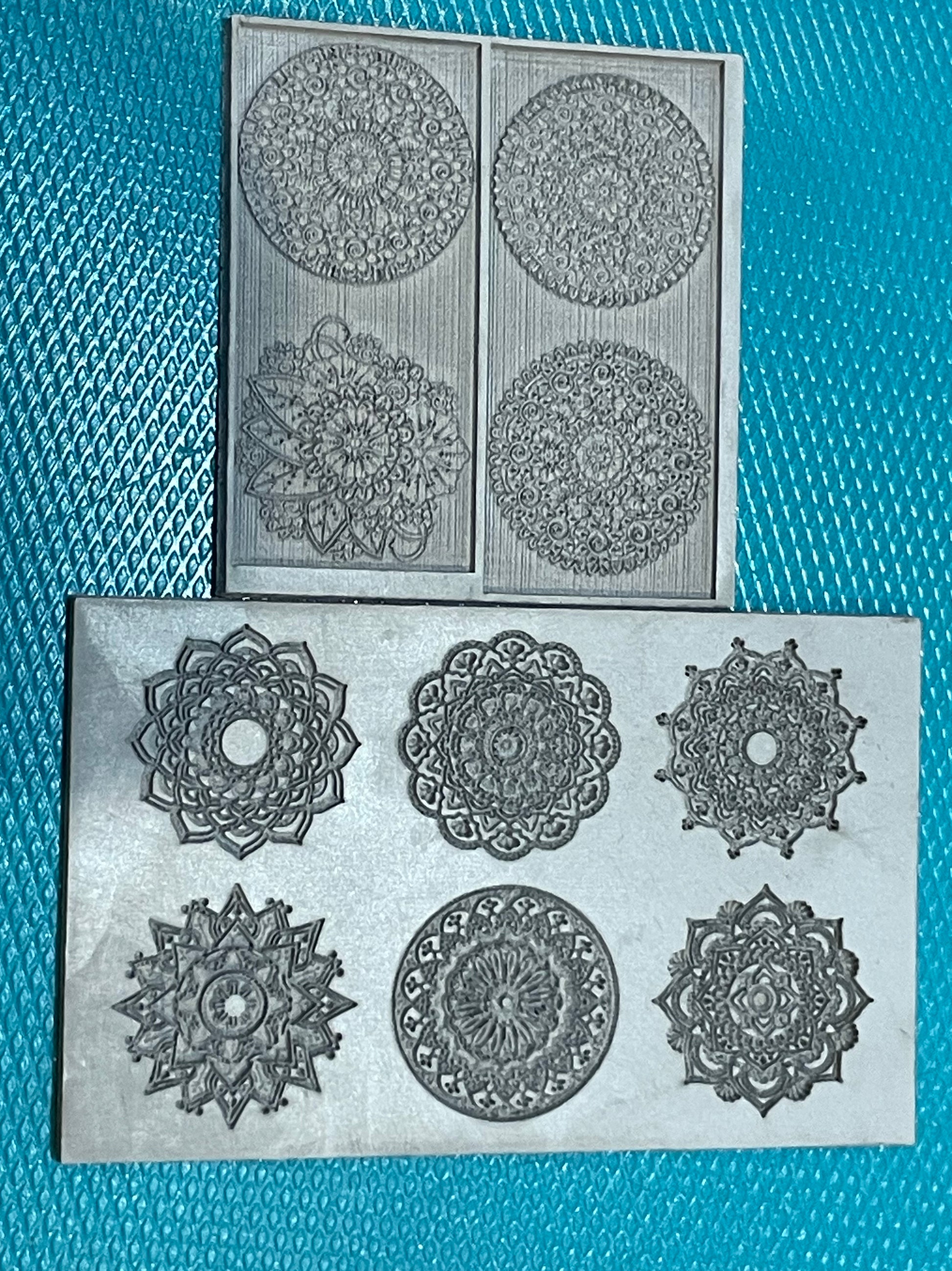 One mandala set engraved deeper and floral set of 4 inverted, as per photo