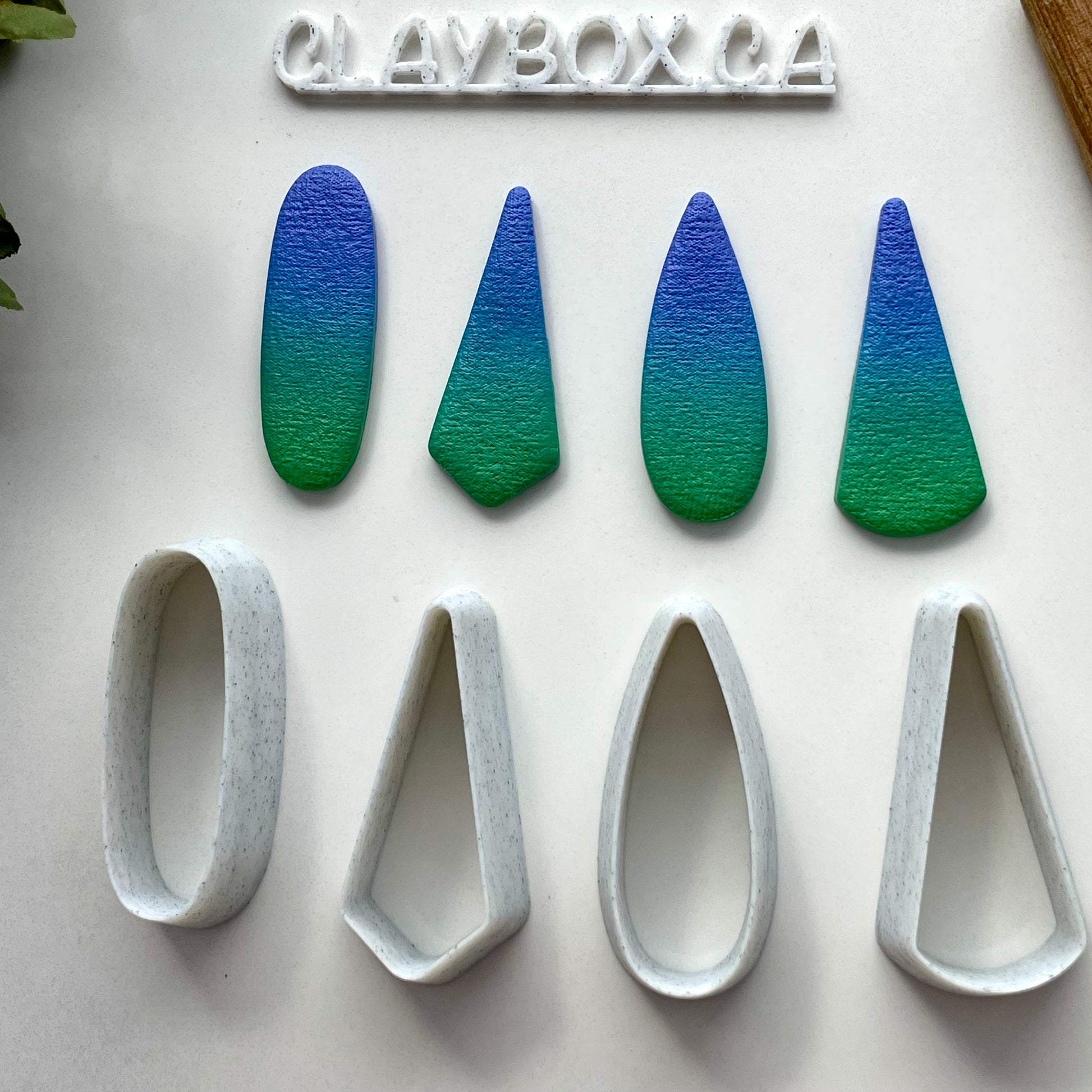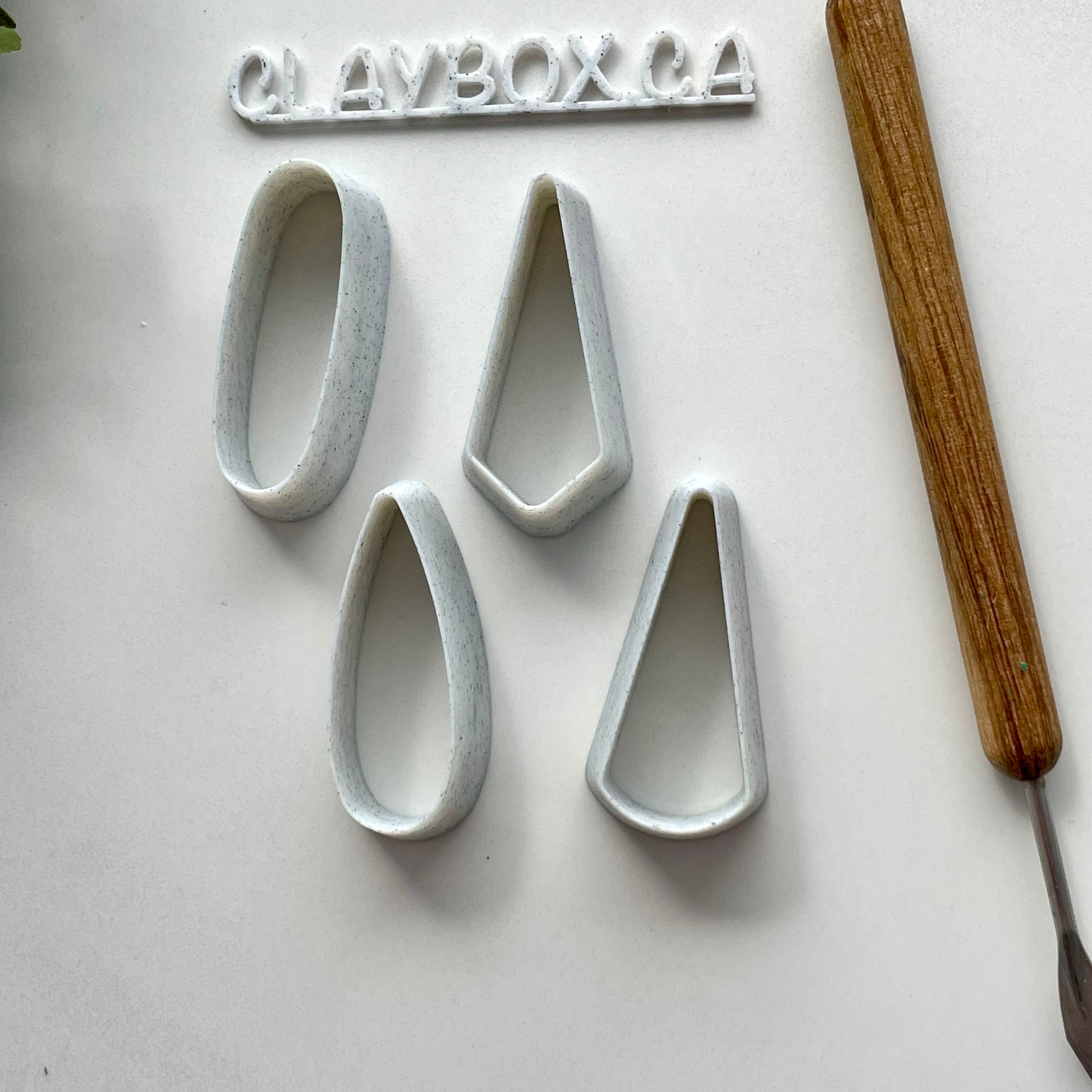 This is a set of four cutters designed especially for making dangle earrings with polymer clay. The width of the 4cm set shown in these pictures ranges from 14mm to 17mm