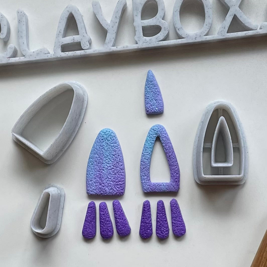 This is a set of three of cutters. The measurements are the length of the large cutters with the small dangle pieces pieces together. Use a release such as cornstarch or water to avoid clay sticking