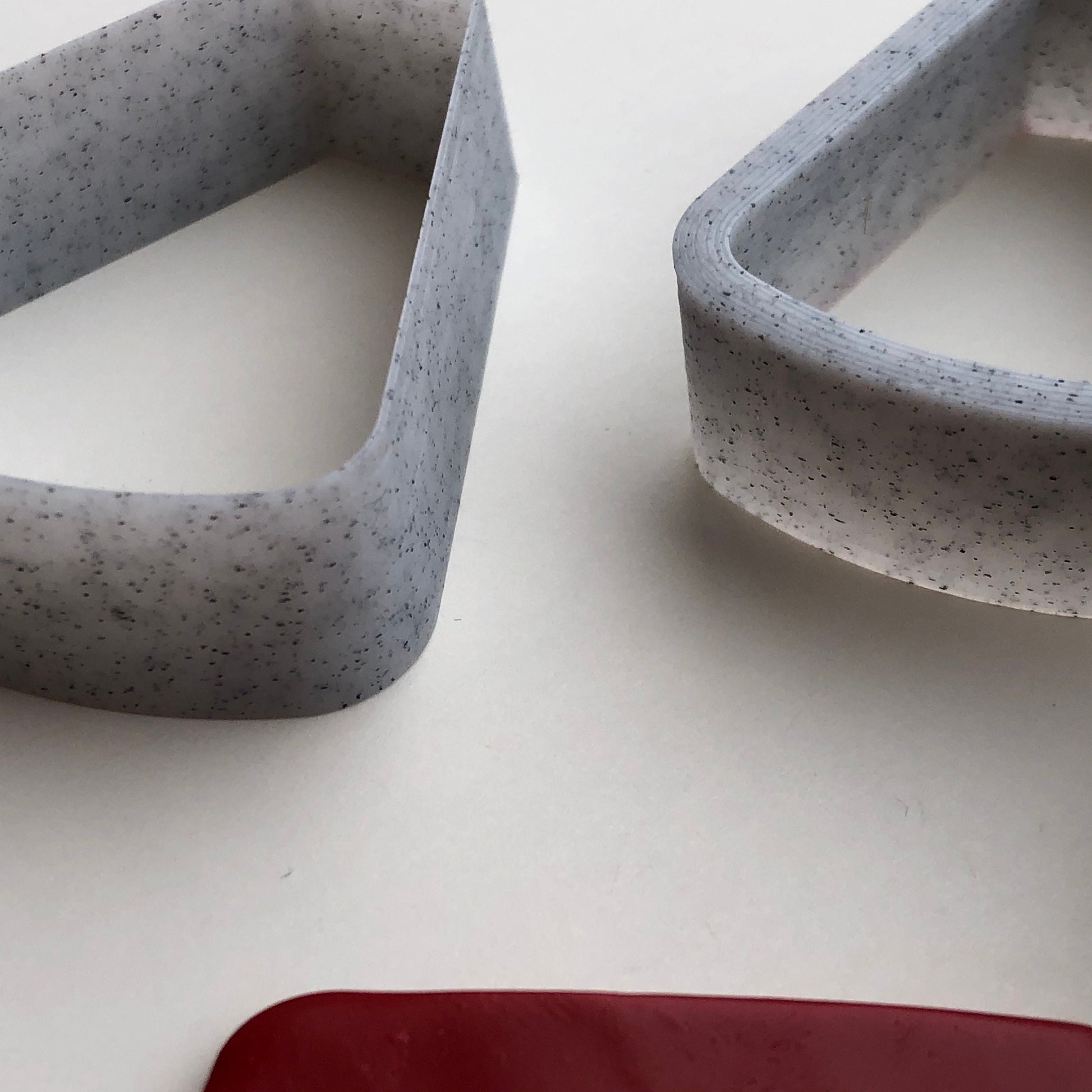 This is a set of six small cutters ranging from 2cm to 4.5 cm long. Designed for polymer clay and printed with a 3D printer, they taper to a sharp cutting edge for a cleaner cut
