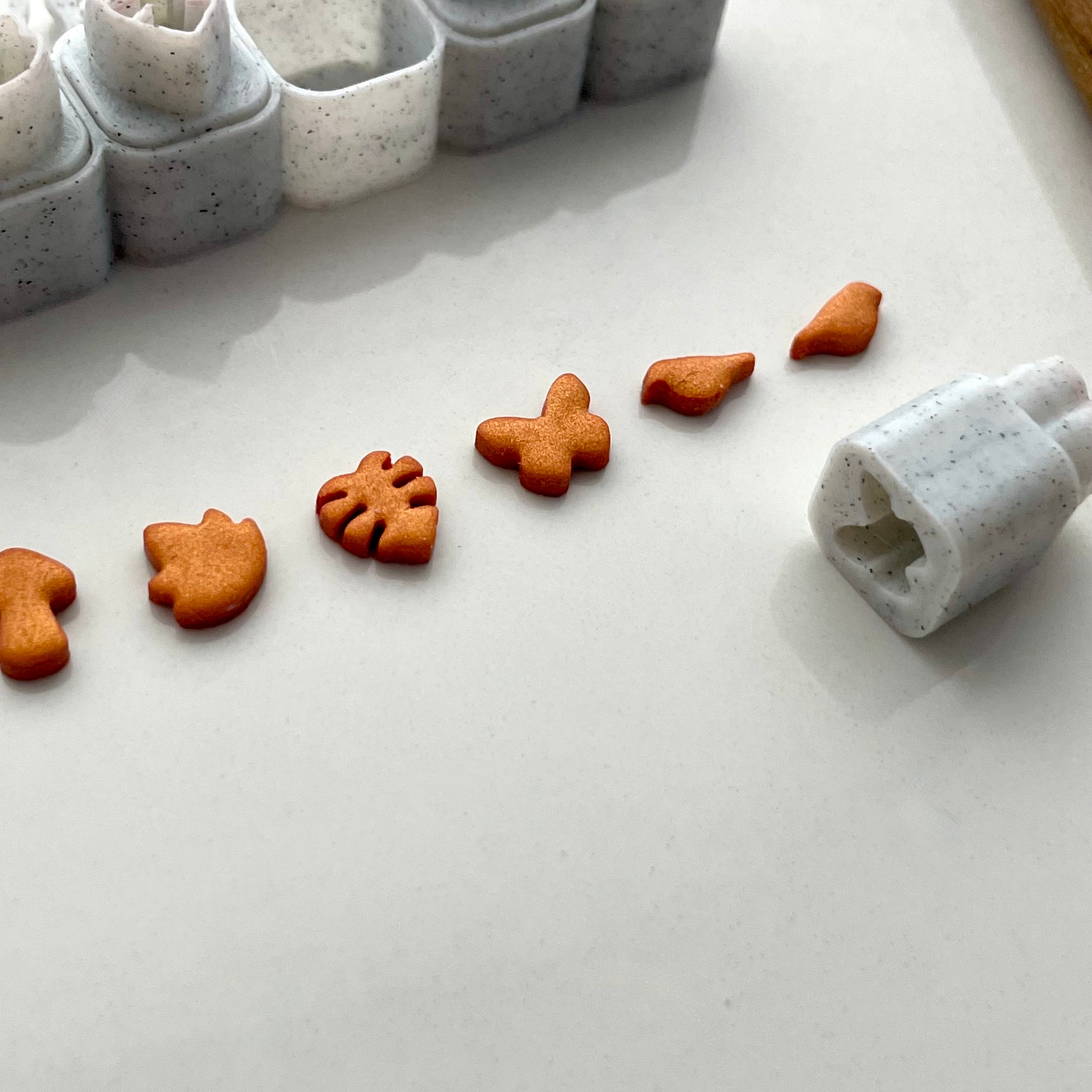 This is a set of six micro cutters designed for use with polymer clay. They have a slightly sharper edge than our regular cutters for a cleaner cut. Try using with thinner clay or a release like water or cornstarch to avoid sticking