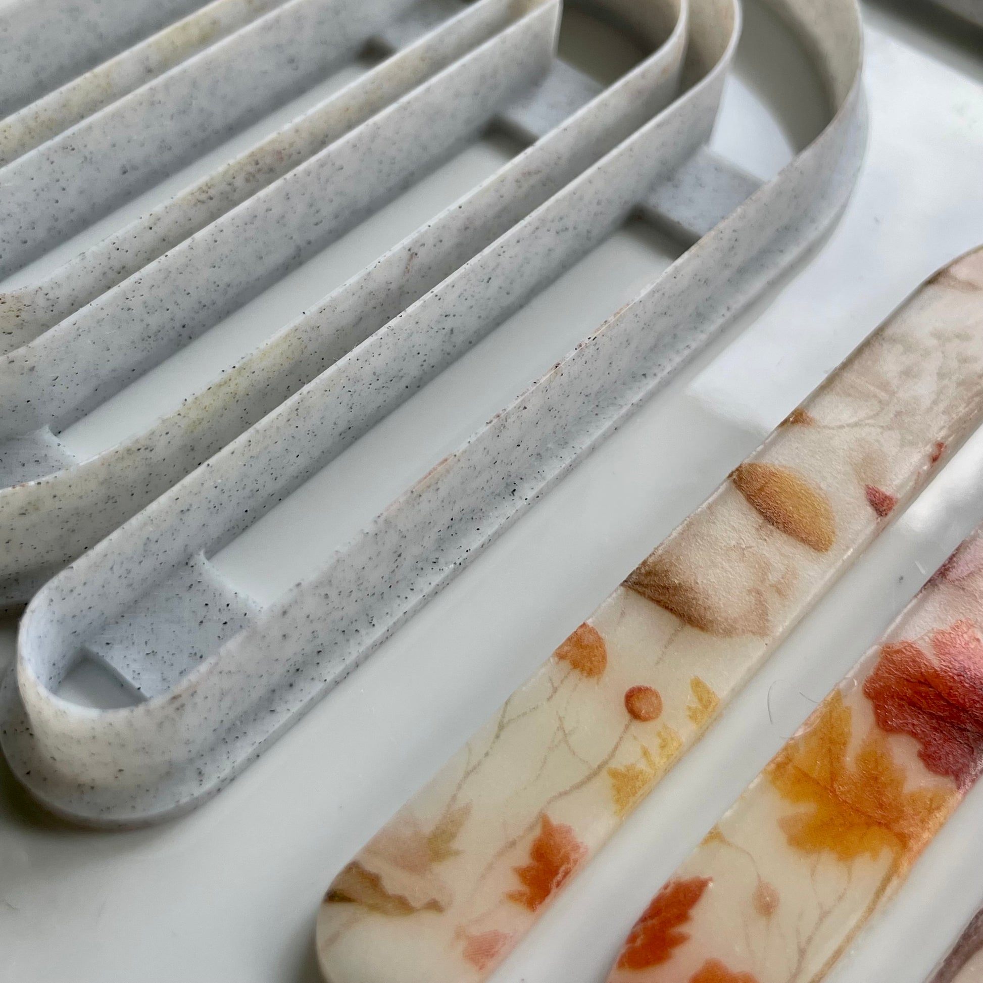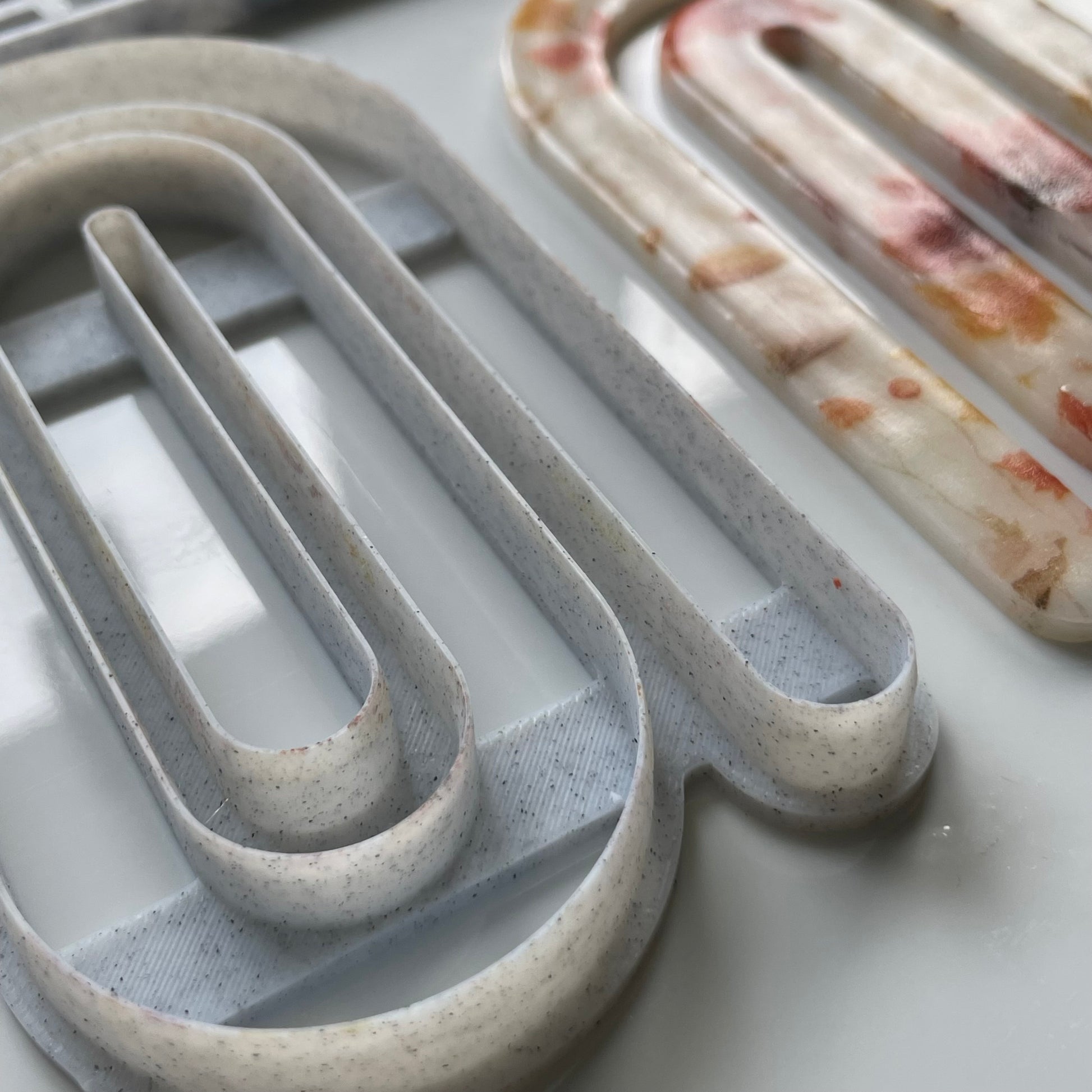 This is a large cutter designed for polymer clay and printed with a 3D printer. The cutter is tapered to a sharp cutting edge for a cleaner cut. This cutter could be used to make some fun bookmarks.