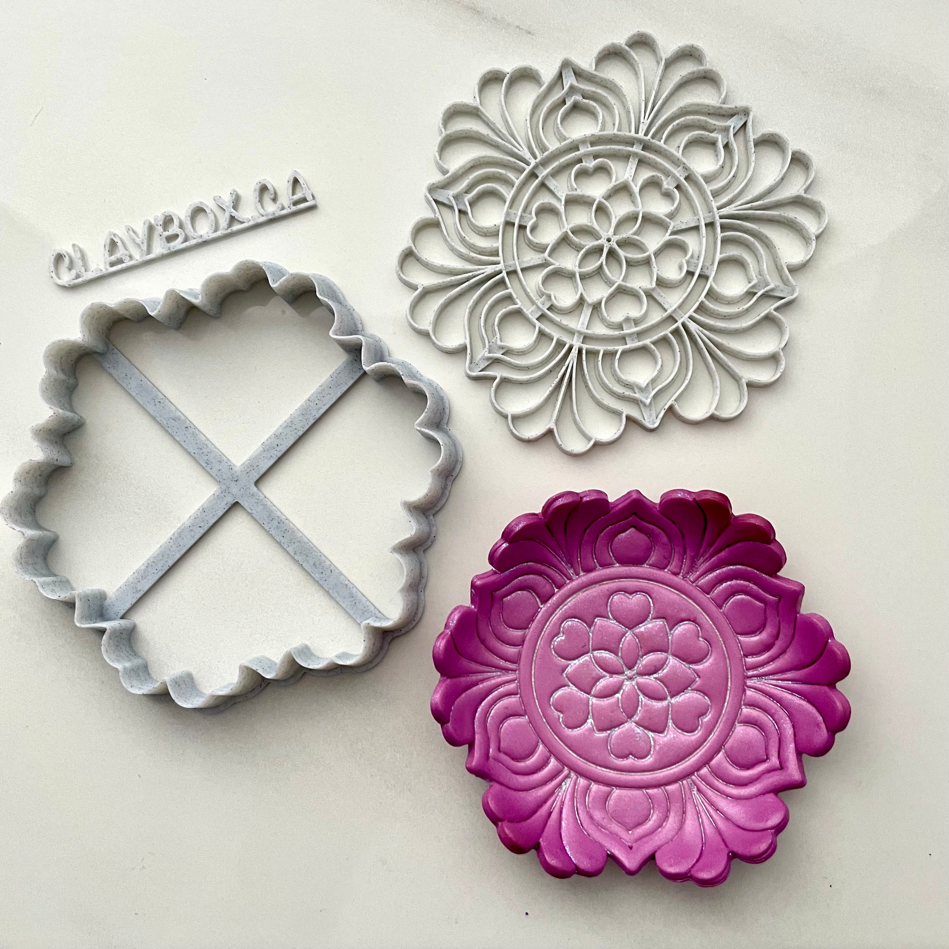 Henna mandala #3 large stamp and matching cutter - made for use with polymer clay