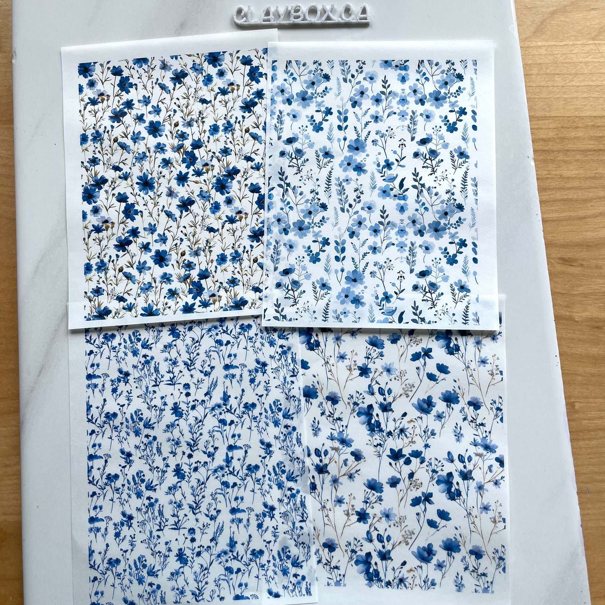 There are four designs in this set. Each design is approx 4" x 5". These transfers are water soluble and come with instructions.