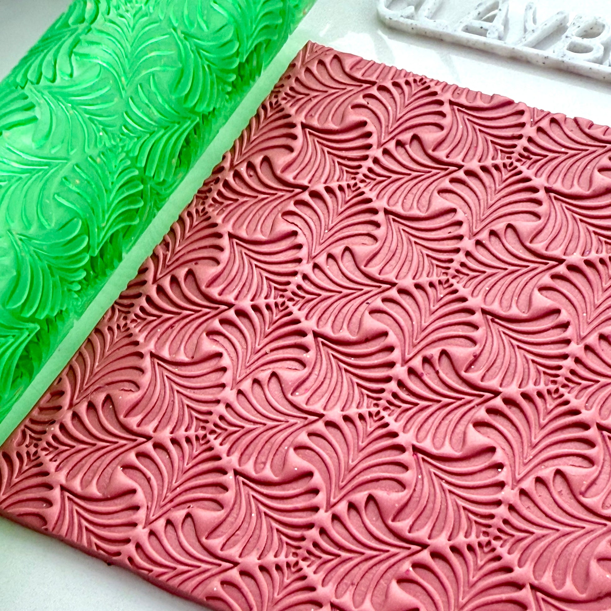 The roller is sized approx. 4” x 1” (10cm x 2.5cm) and is designed to leave crisp, clean impressions in polymer clay, air dry clay, and other soft materials.
