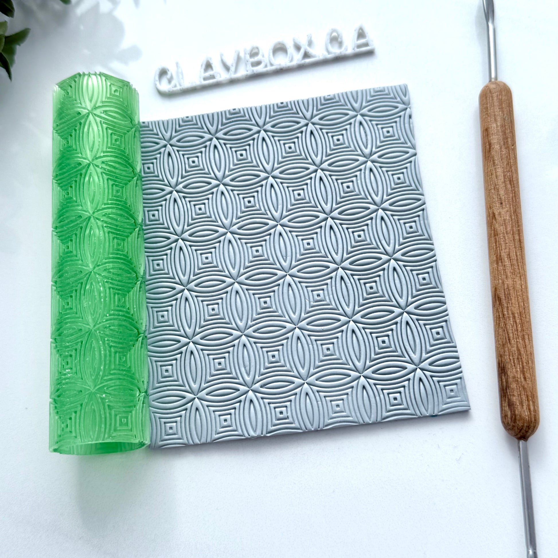 Kaleidoscope Texture Roller for Polymer Clay – 4 Inch Embossing Roller, Geometric Pattern, Clay Tool