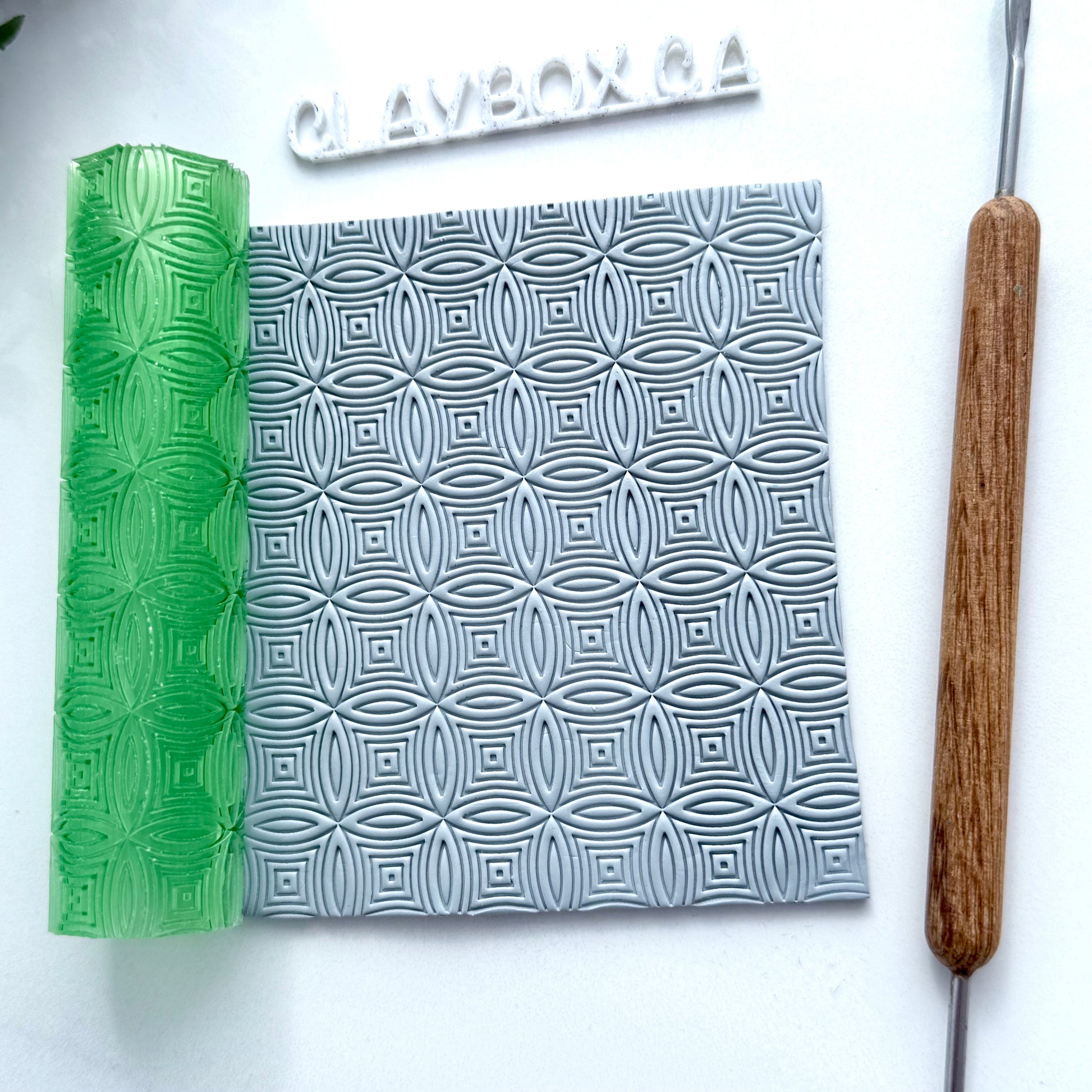 Add stunning detail to your polymer clay creations with this 4-inch kaleidoscope texture roller. The clean geometric design rolls smoothly and creates a crisp, embossed pattern ideal for earrings, pendants, trays, and more.