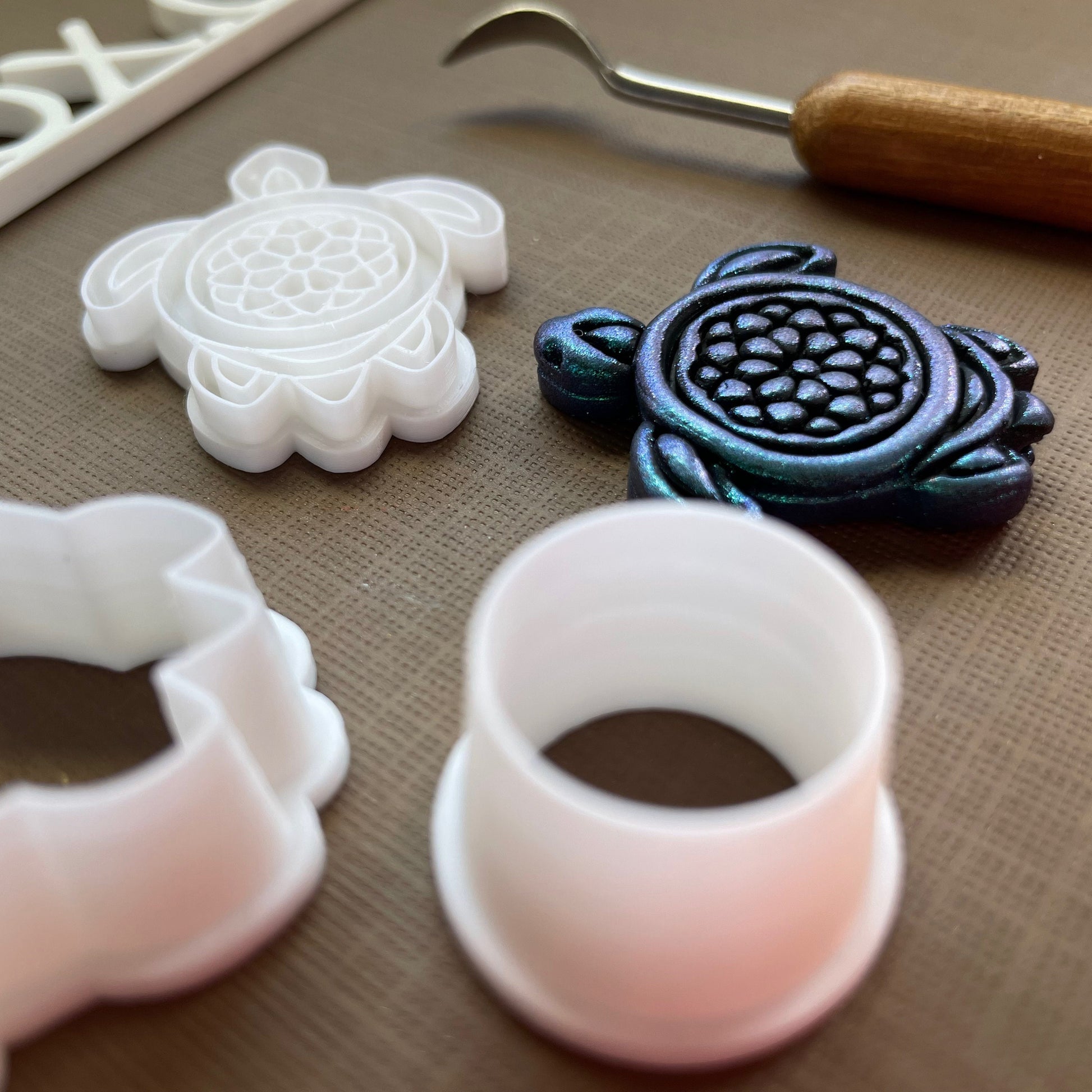 This is a set of 3D printed stamps and cutters made for use with polymer clay. Each set includes one turtle stamp, a matching turtle cutter and a circle cutter that matches the mandala circle