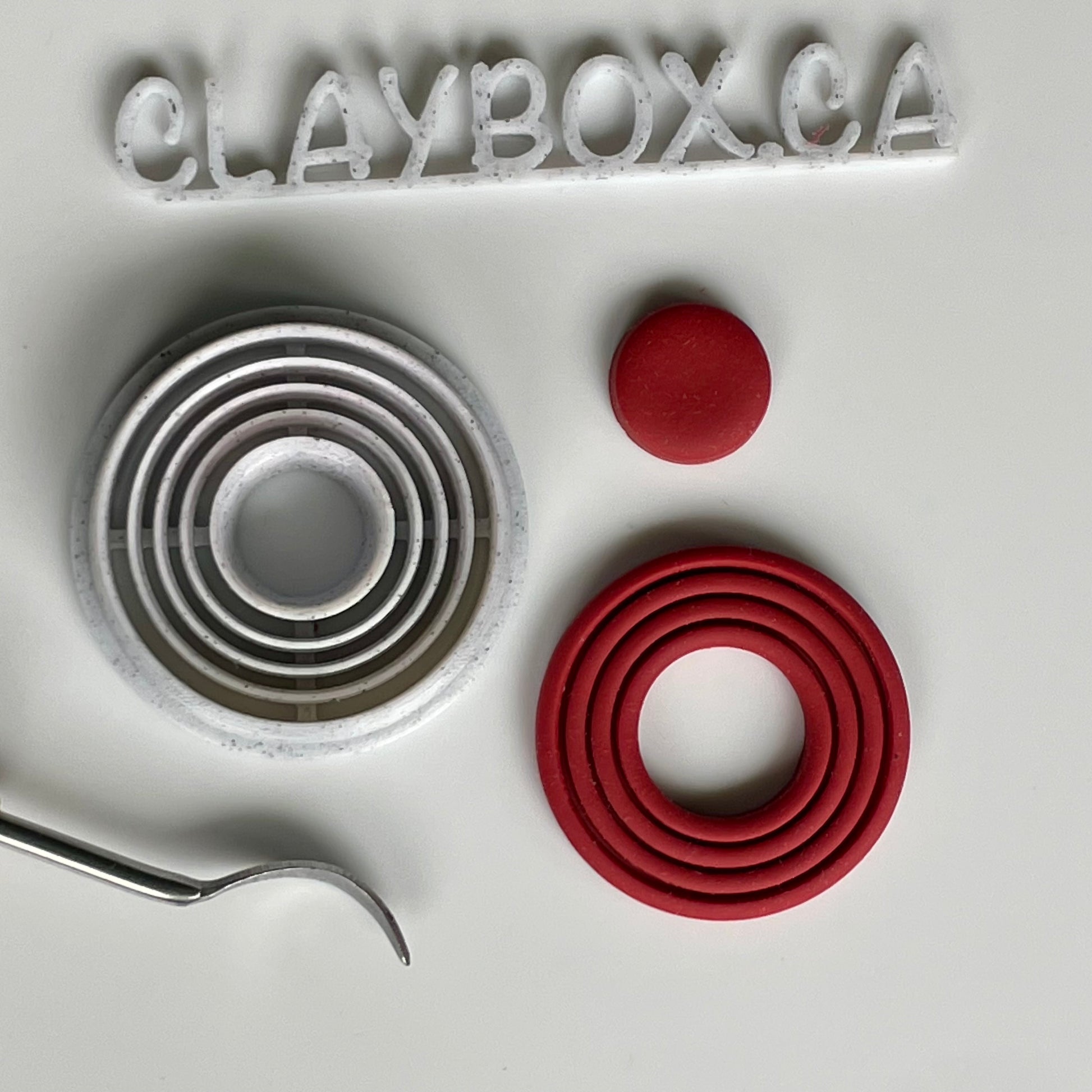 This is a donut cutter, designed for polymer clay and printed with a 3D printer. The edges taper to a sharp cutting edge for a cleaner cut. The stamp lines are 2mm offset from the cutting edge and work well with 3mm thick clay.