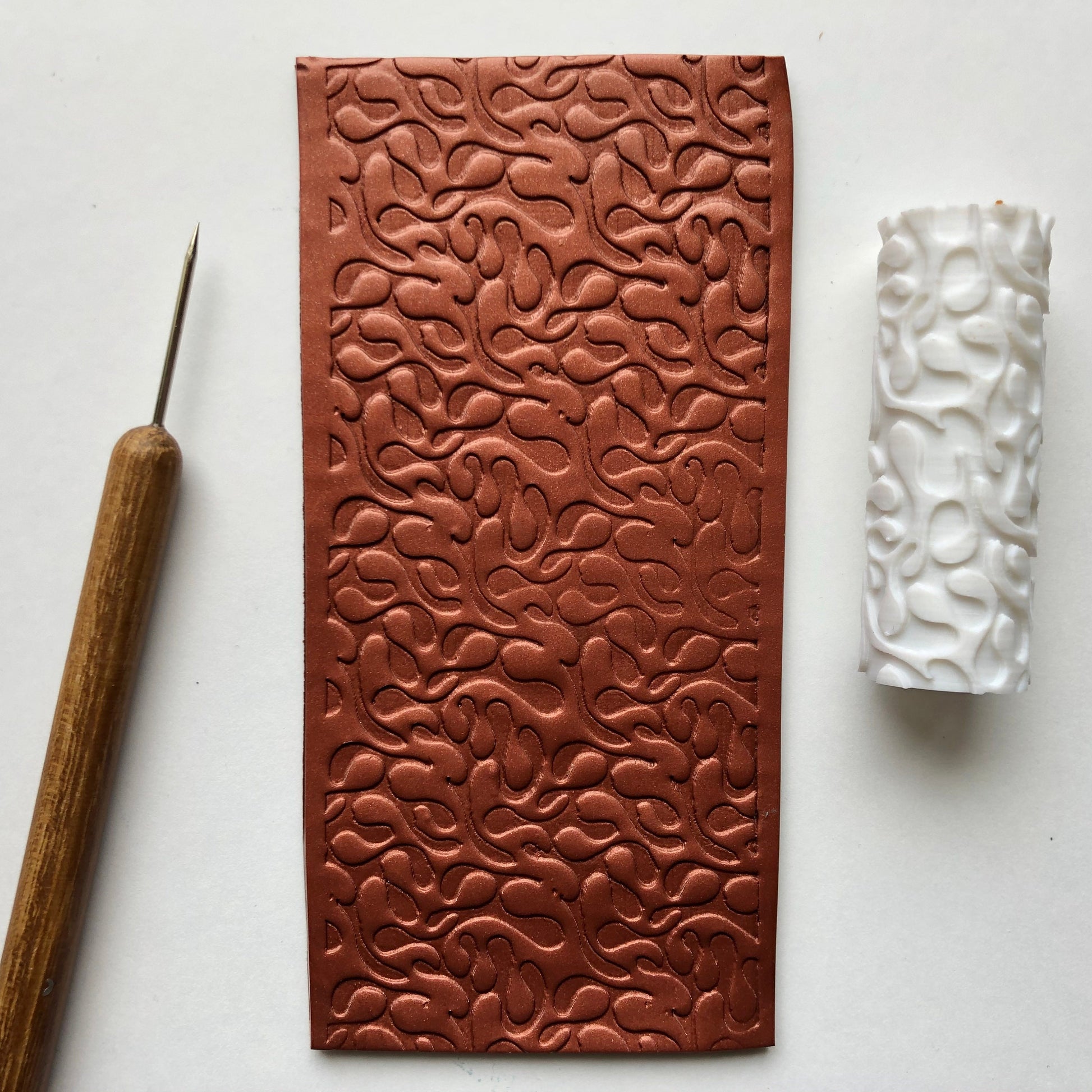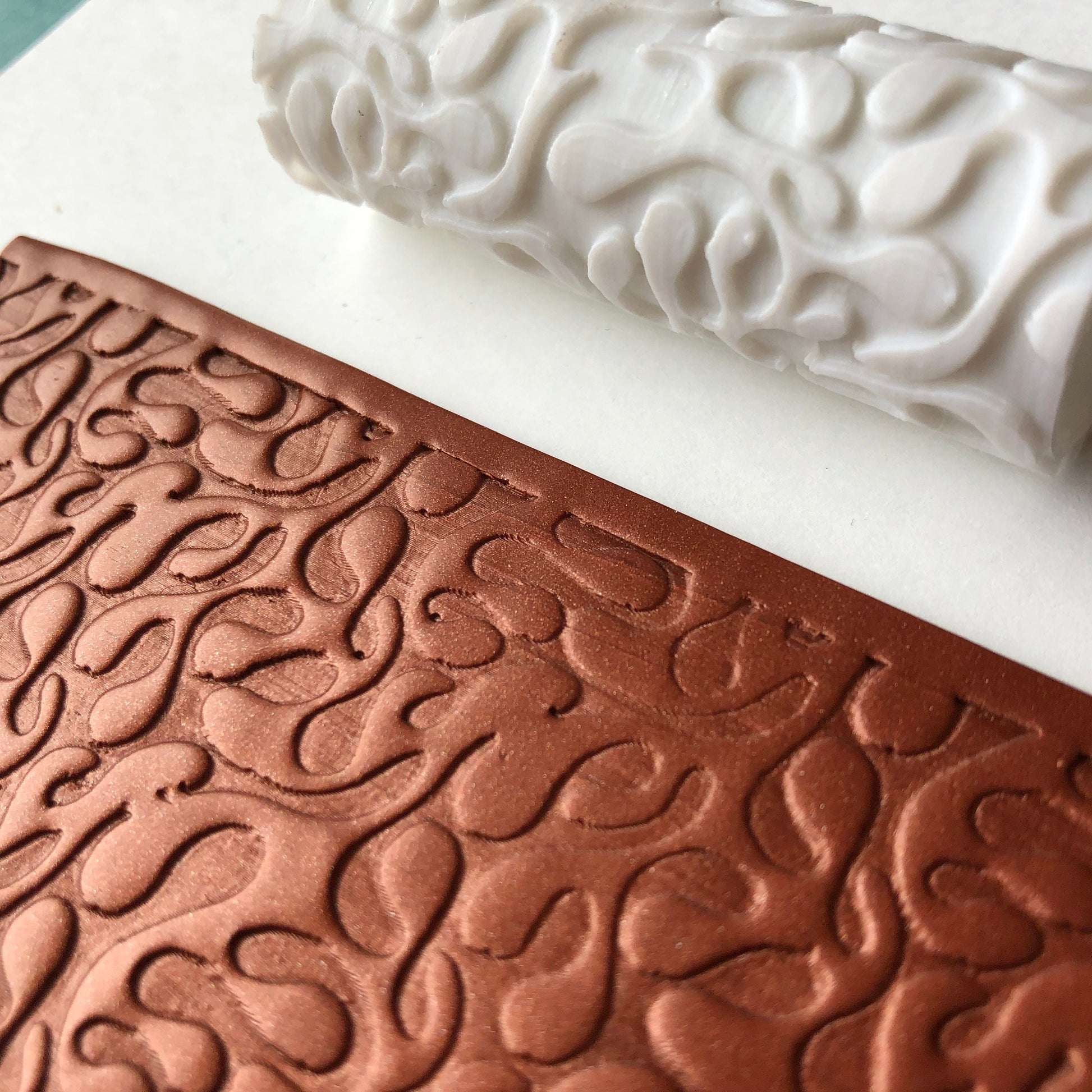 This is a roller designed to make an imprint in polymer clay. Printed with a 3D printer the design is 1mm deep. The roller is 6cm tall and approx 2cm wide.