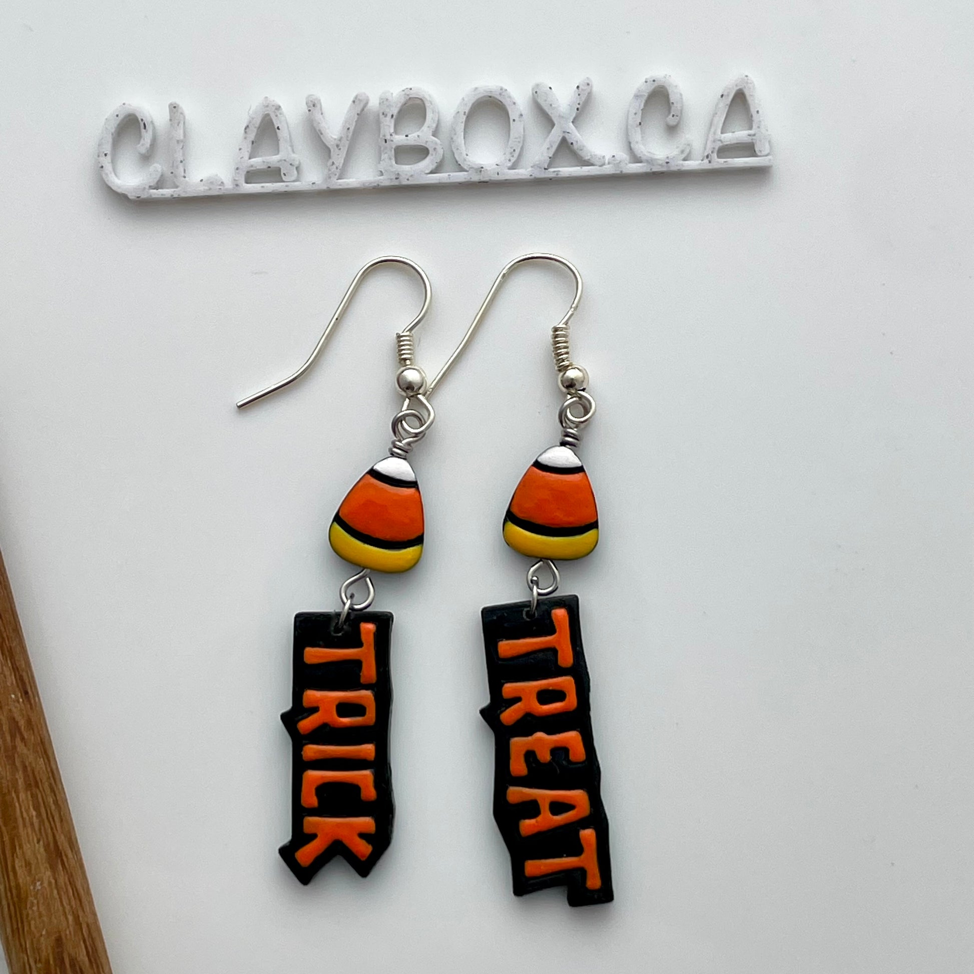 This is two word cutters that create the debossed words, trick and treat. Also included is a matching candy corn cutter. In the pic shown the treat word is 3cm x 1cm and the candy corn is just over 1cm tall. Sizes shown are based on the length of the word "TREAT"