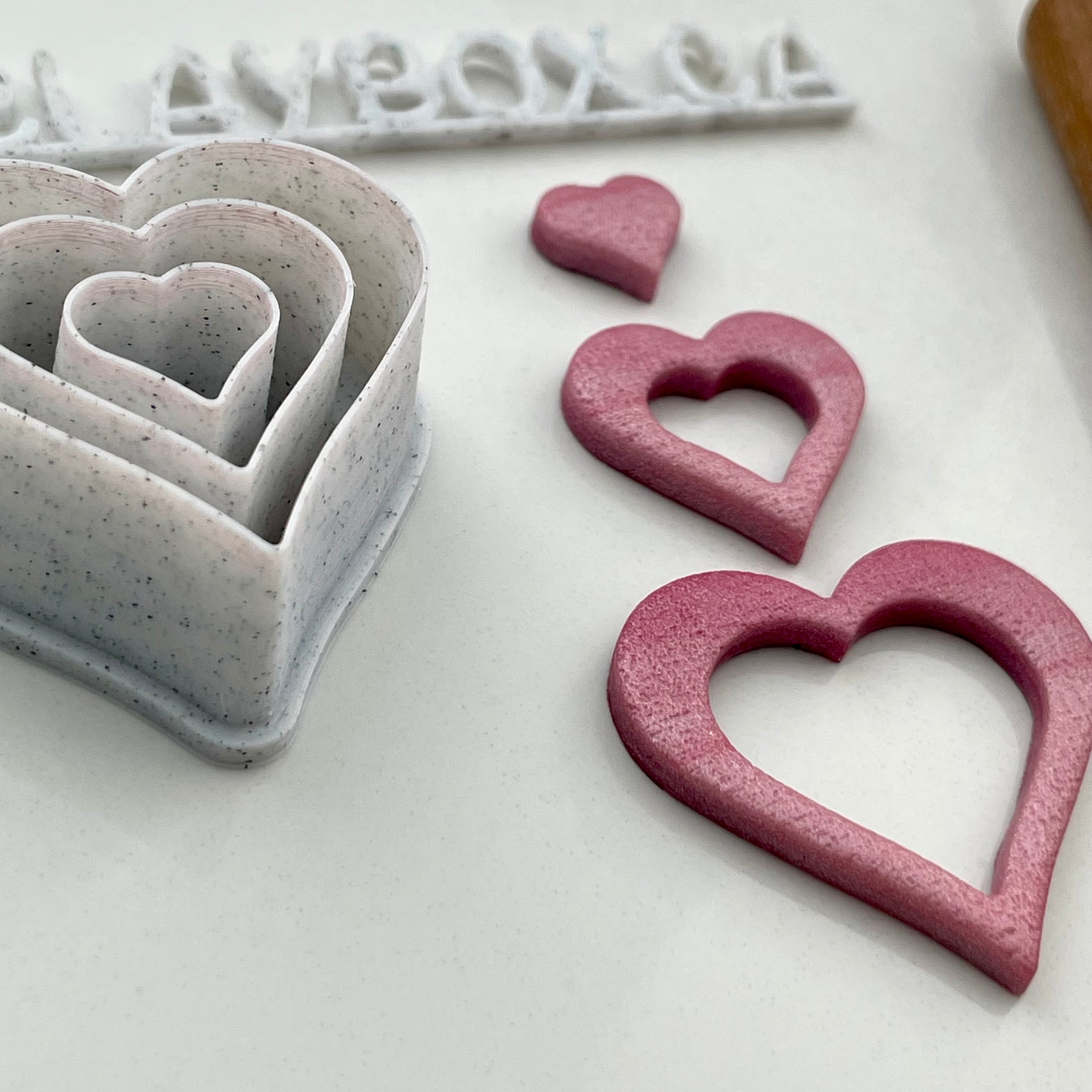 This is a donut cutter which cuts three heart shapes at once. The cutters taper to a sharp cutting edge for a cleaner cut.