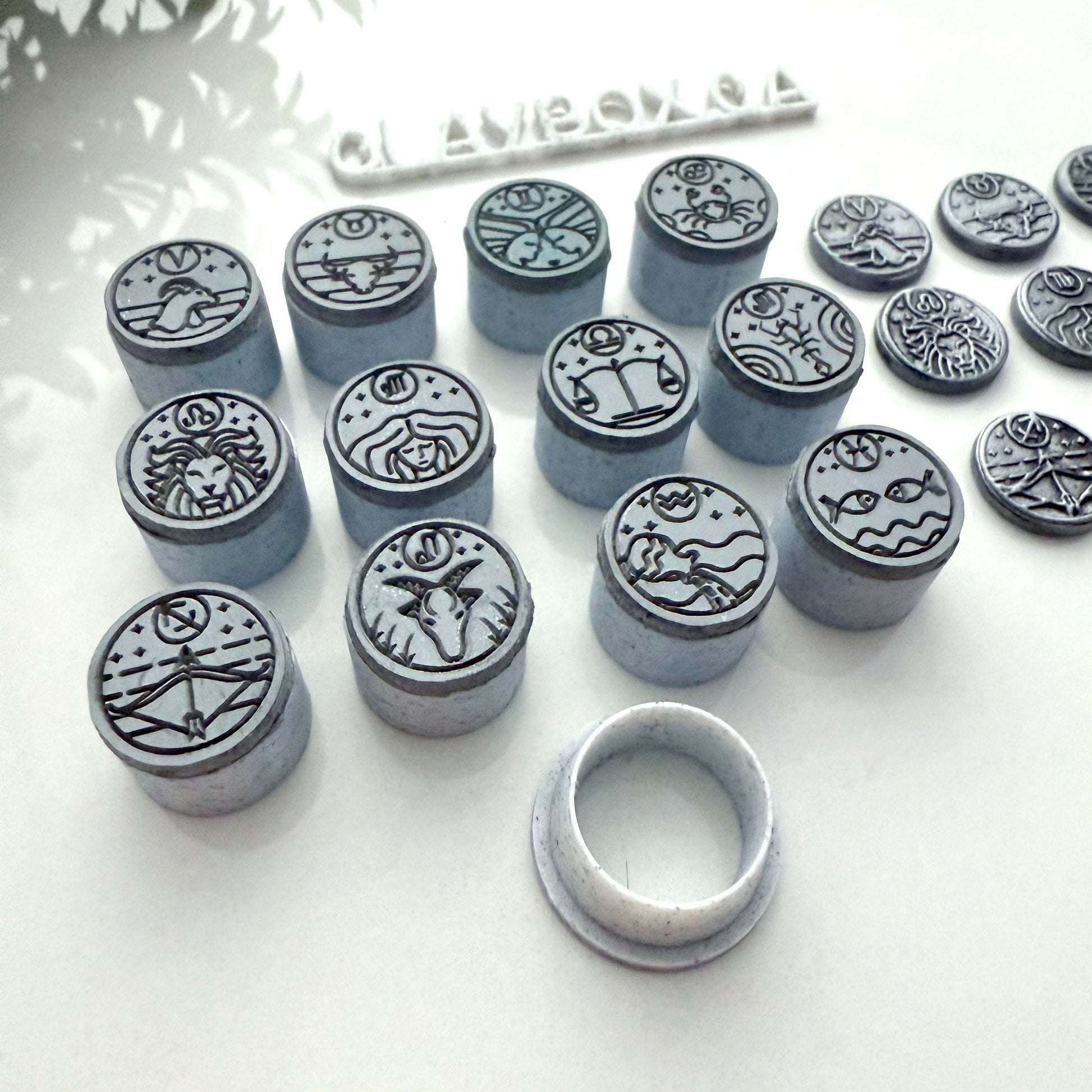 Zodiac Rubber Stamp Set | 12 Stamps with Circle Cutter | Polymer Clay Tools for Astrology Designs
