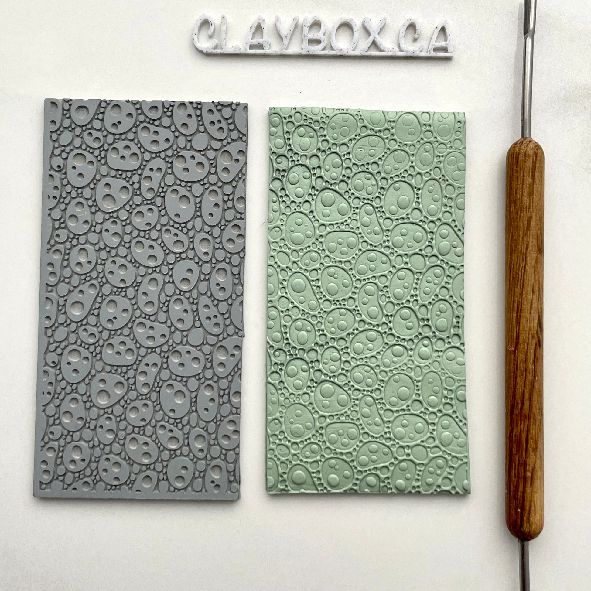 This rubber texture mat is sized 2" x 4".  Laser engraved to create a finely detailed texture stamp.  Press into your clay and then roll over firmly in one pass for the deepest impression.