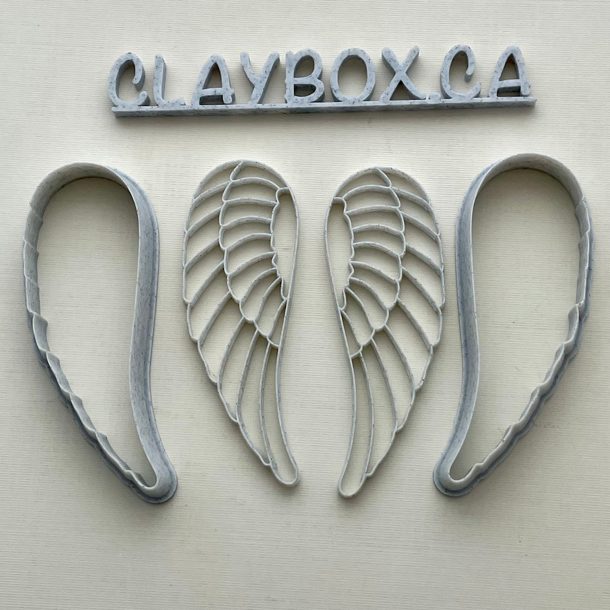 This is a pair of 3D printed stamps (left and right) with matching cutters, made for use with polymer clay.