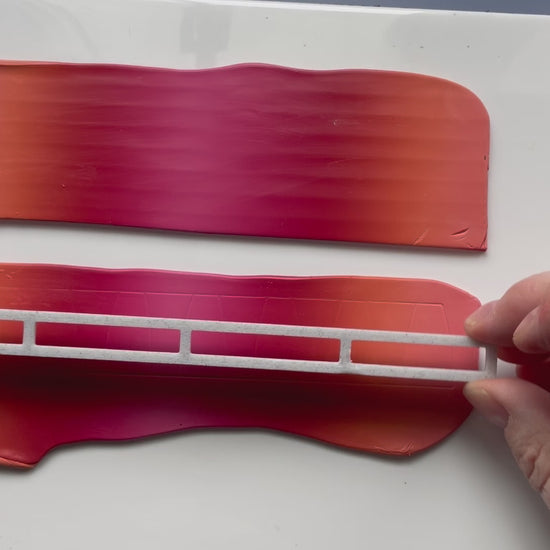 This set contains a bracelet multicutter, that cuts multiple pieces at once, and a line stamp for marking holes. This multi cutter measures approx 6" x 1".