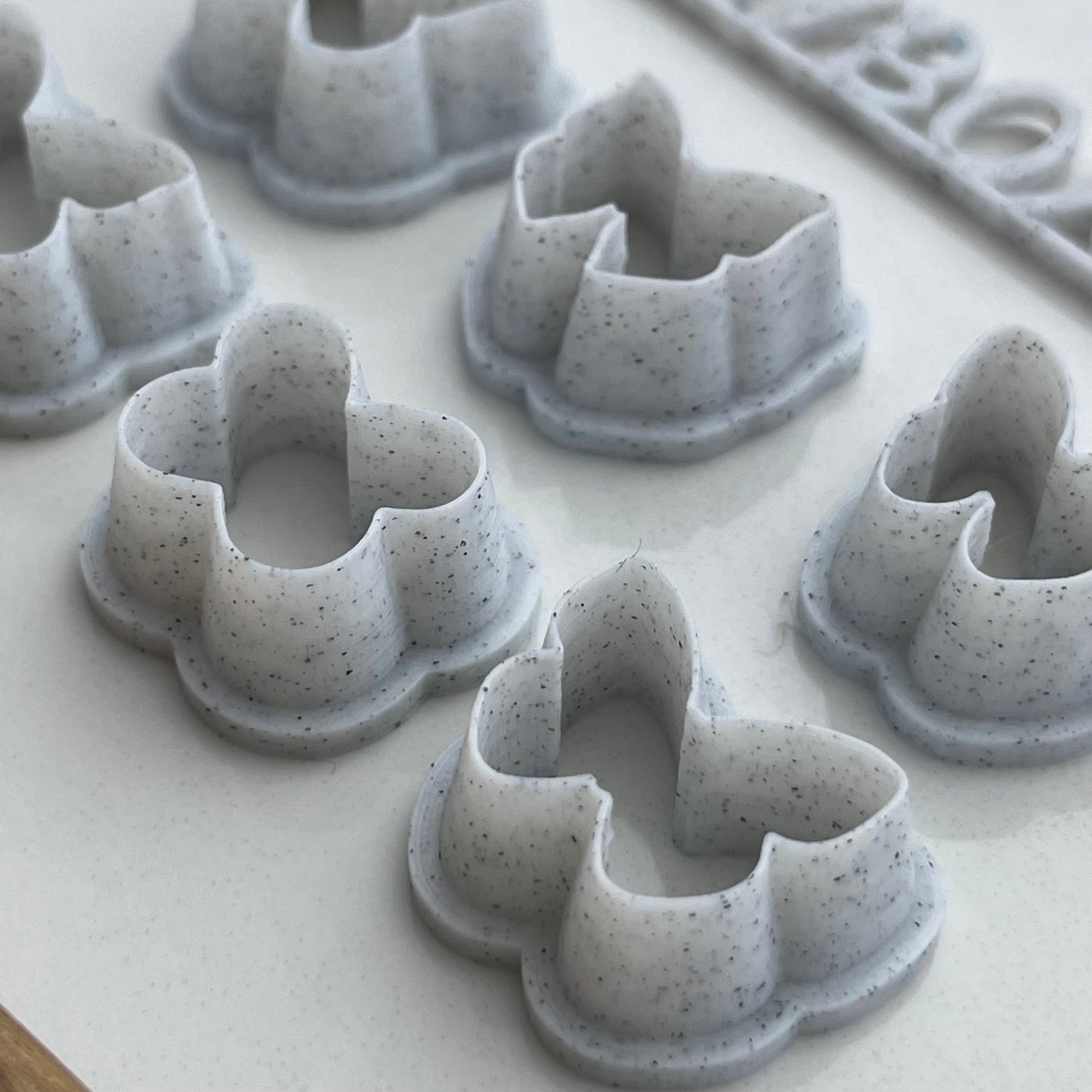 The cutters are printed with a 3D printer and taper to a sharp cutting edge.