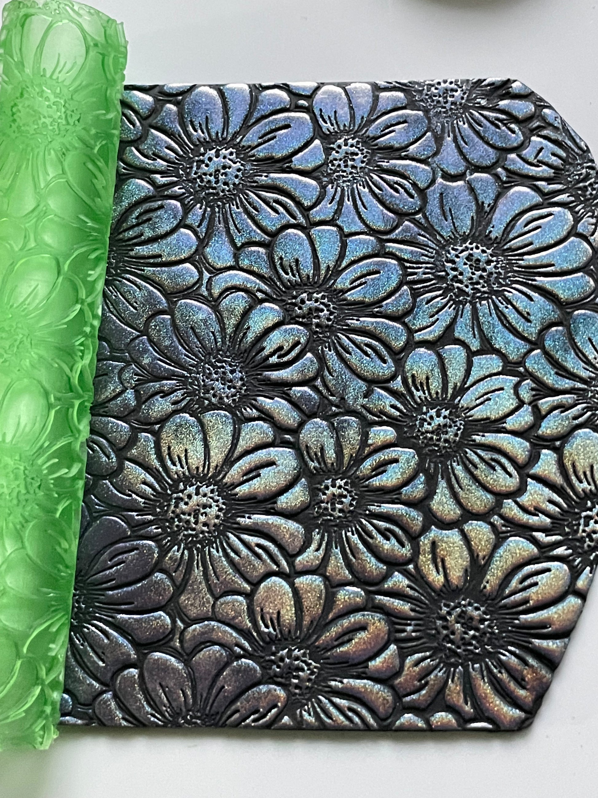 This is a roller designed to make an imprint in polymer clay. Printed with a 3D printer the design is 1.2mm deep. The roller is 12cm(4.75") tall and approx 2.2cm wide.