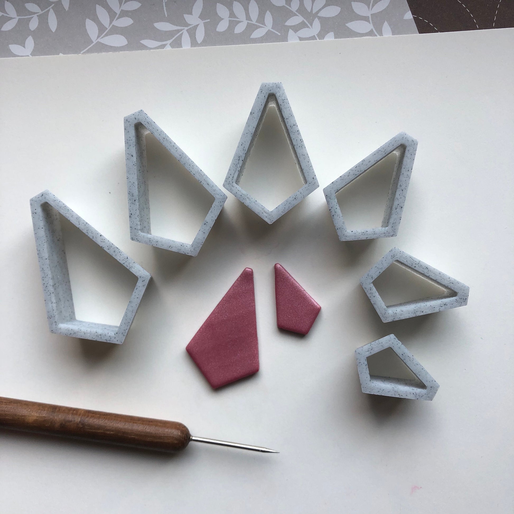 This is a set of six small cutters ranging from 2cm to 4.5 cm long. Designed for polymer clay and printed with a 3D printer, they taper to a sharp cutting edge for a cleaner cut