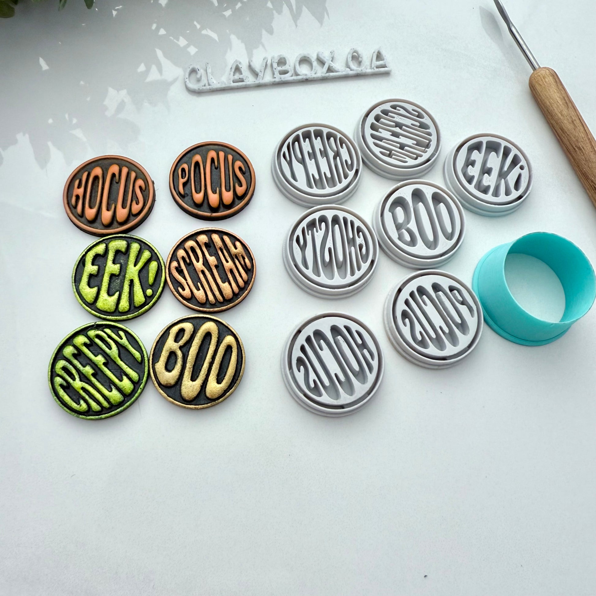 Halloween Word Stamps with Matching Cutter – Polymer Clay Stamps