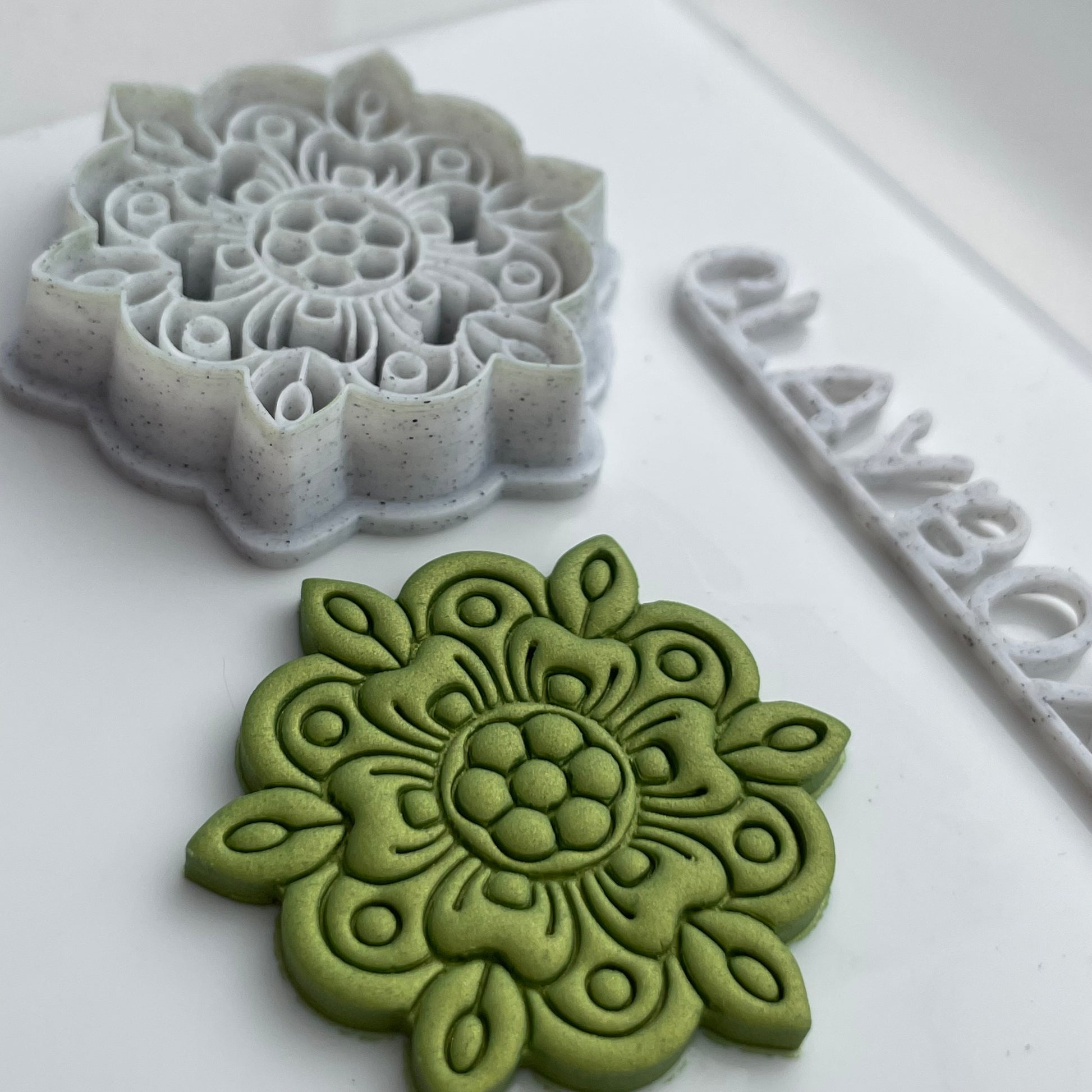 This combined stamp/cutter works well with 3mm clay. Some kind of release like cornstarch is recommended to stop clay sticking.
