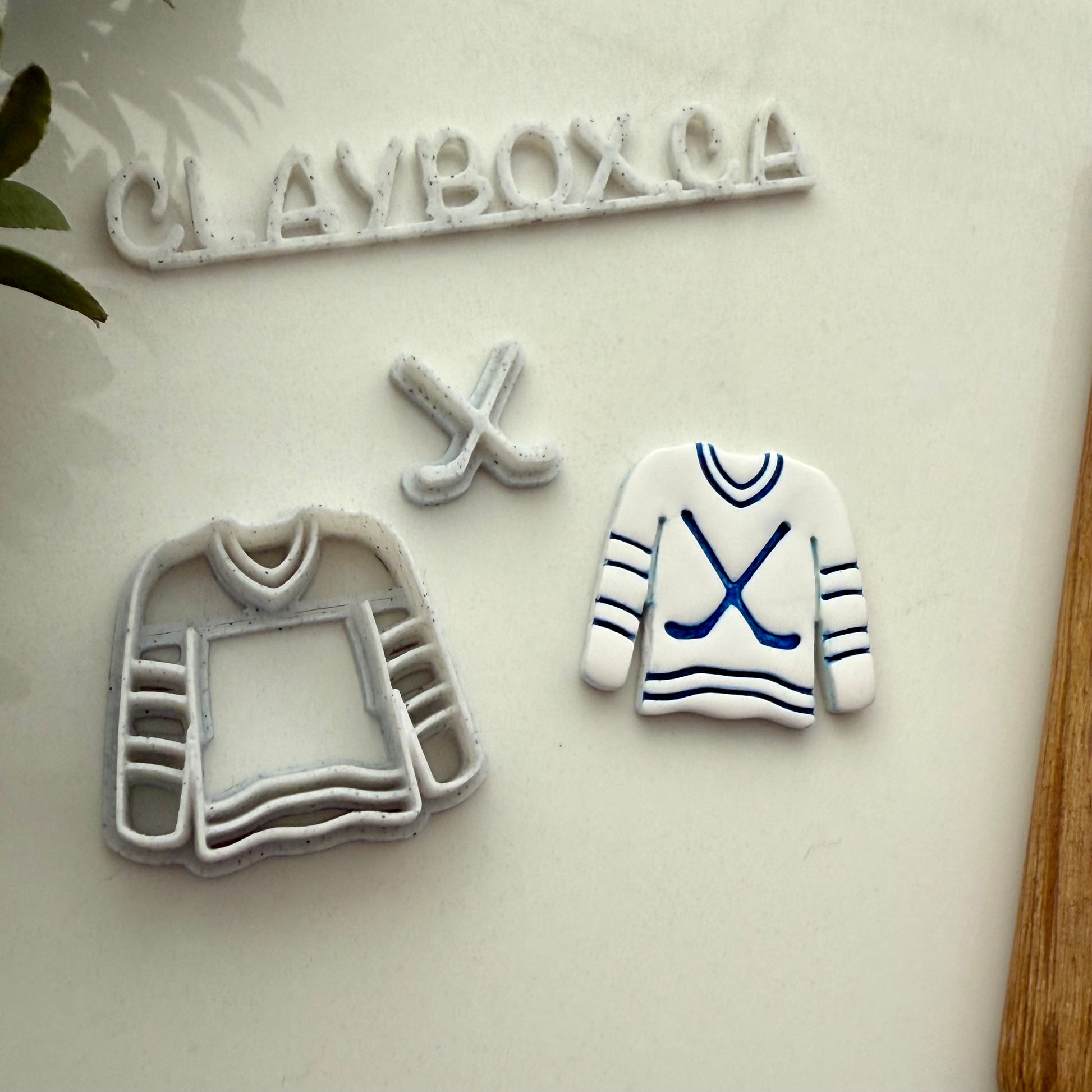 Hockey jersey cutter with hockey sticks stamp - for polymer clay
