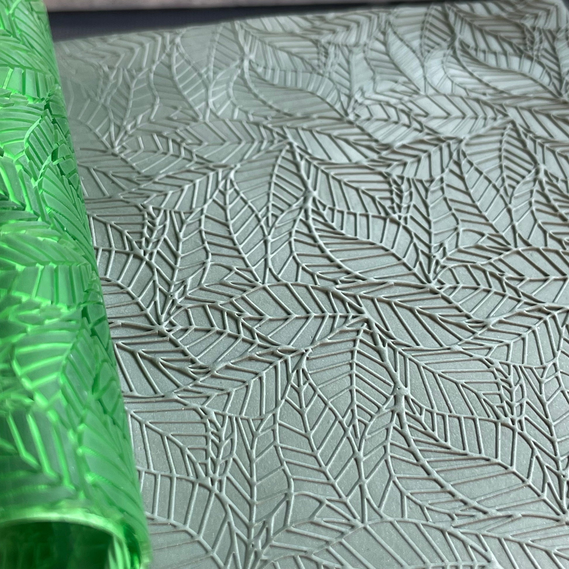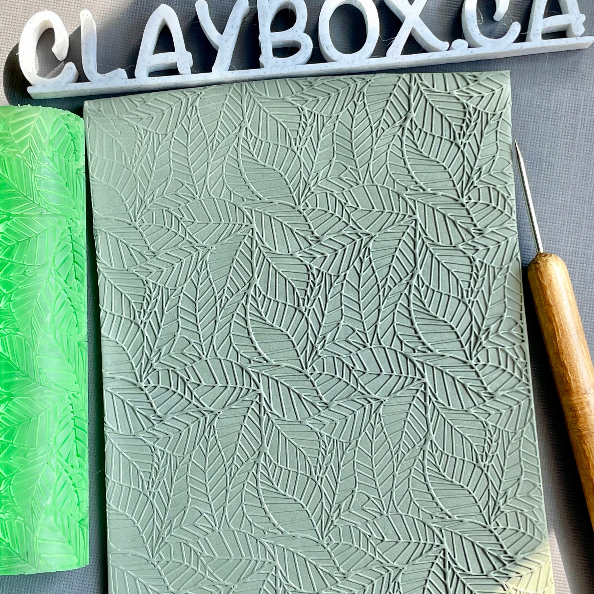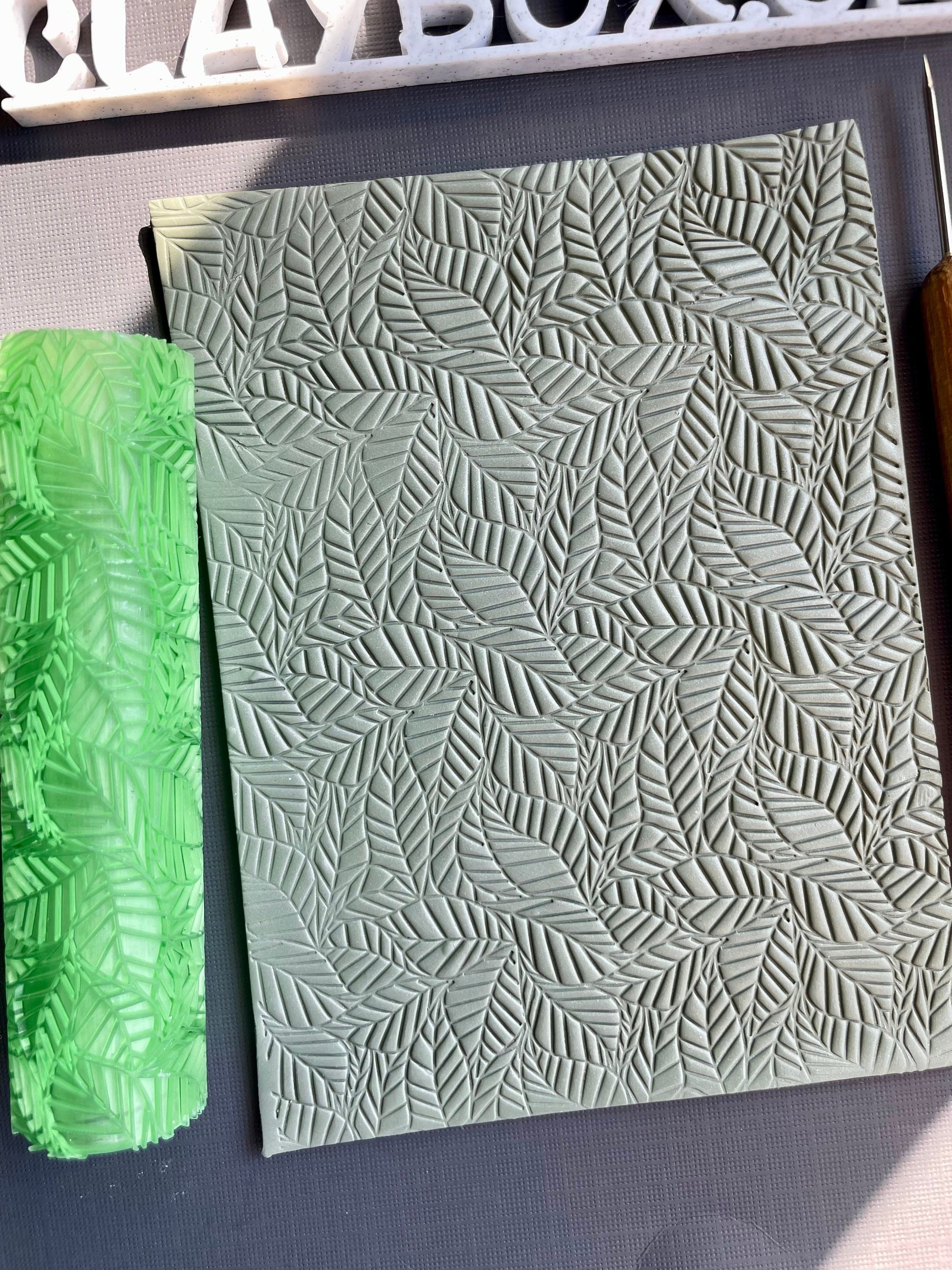 DEBOSS - The deboss roller makes the leaf lines raised on the clay