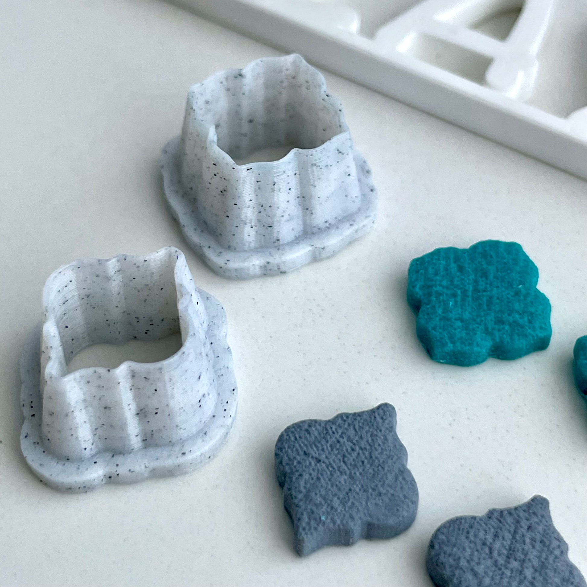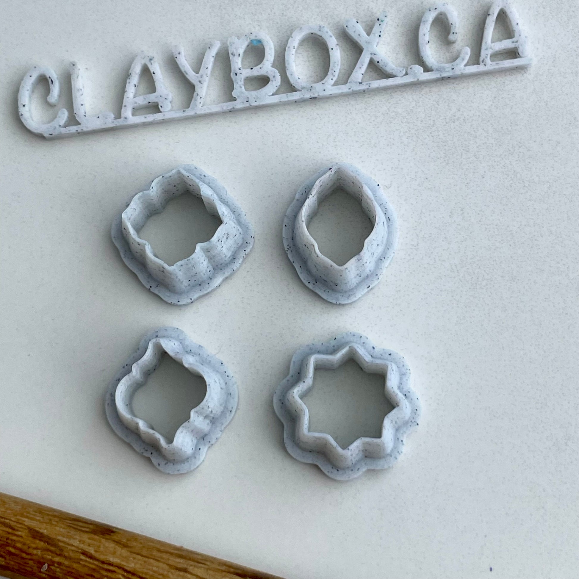 This is a mixed shape set of four Morrocan shape clay cutters. The cutters taper to a sharp cutting edge.