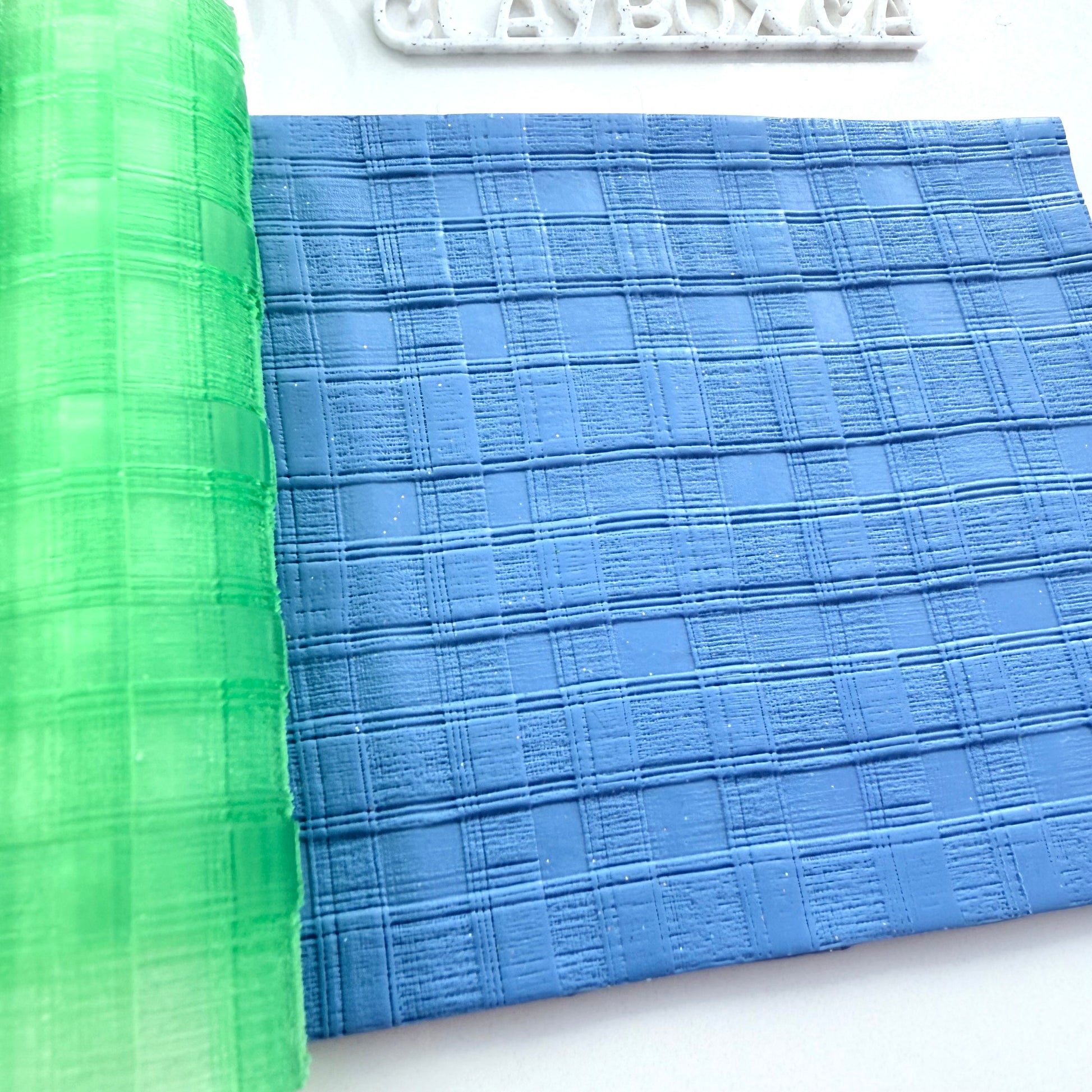 Simply roll over your clay to produce a uniform plaid imprint. For best results, use a light release such as cornstarch or water to prevent sticking.