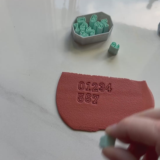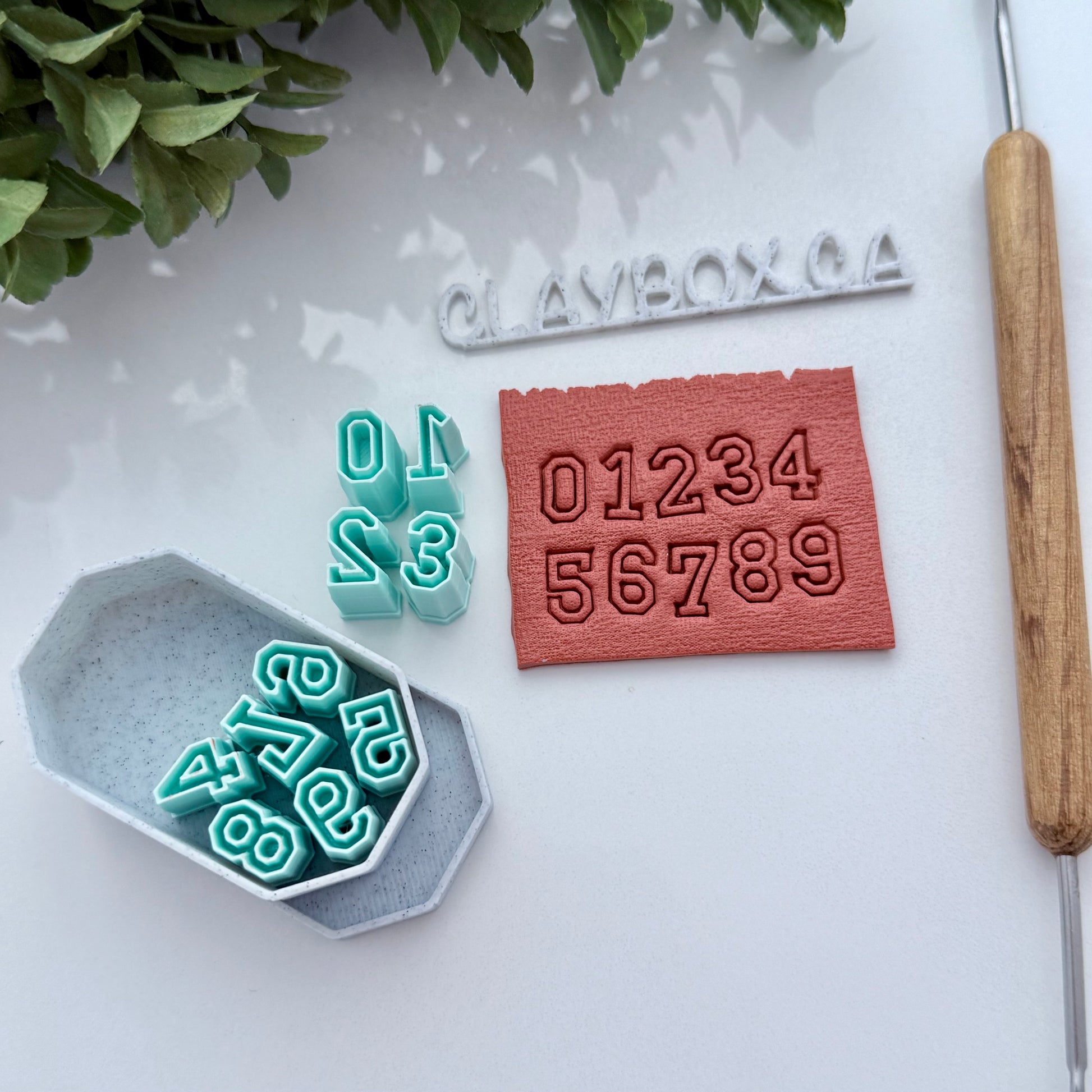 This polymer clay stamp set includes all ten digits in a clean, bold outline style – perfect for sporty, graphic designs. Each stamp creates a crisp, easy-to-read impression that works great for jersey numbers, athlete gifts, custom name tags, and more.