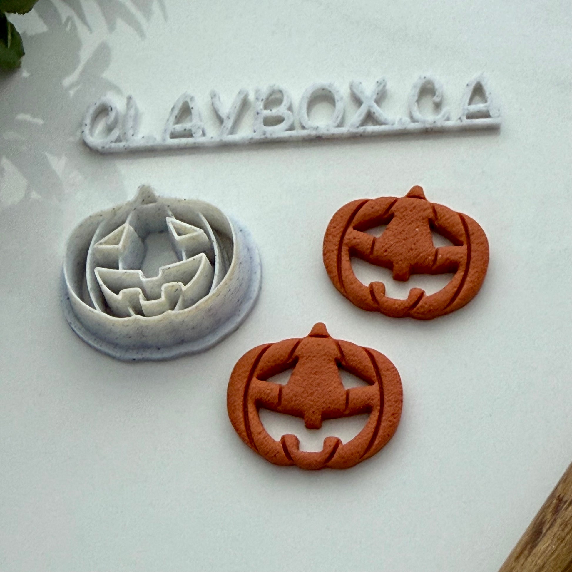 This combined stamp/cutter works well with 3mm clay. The eyes and mouth are cut out. Some kind of release like cornstarch is recommended to stop clay sticking.