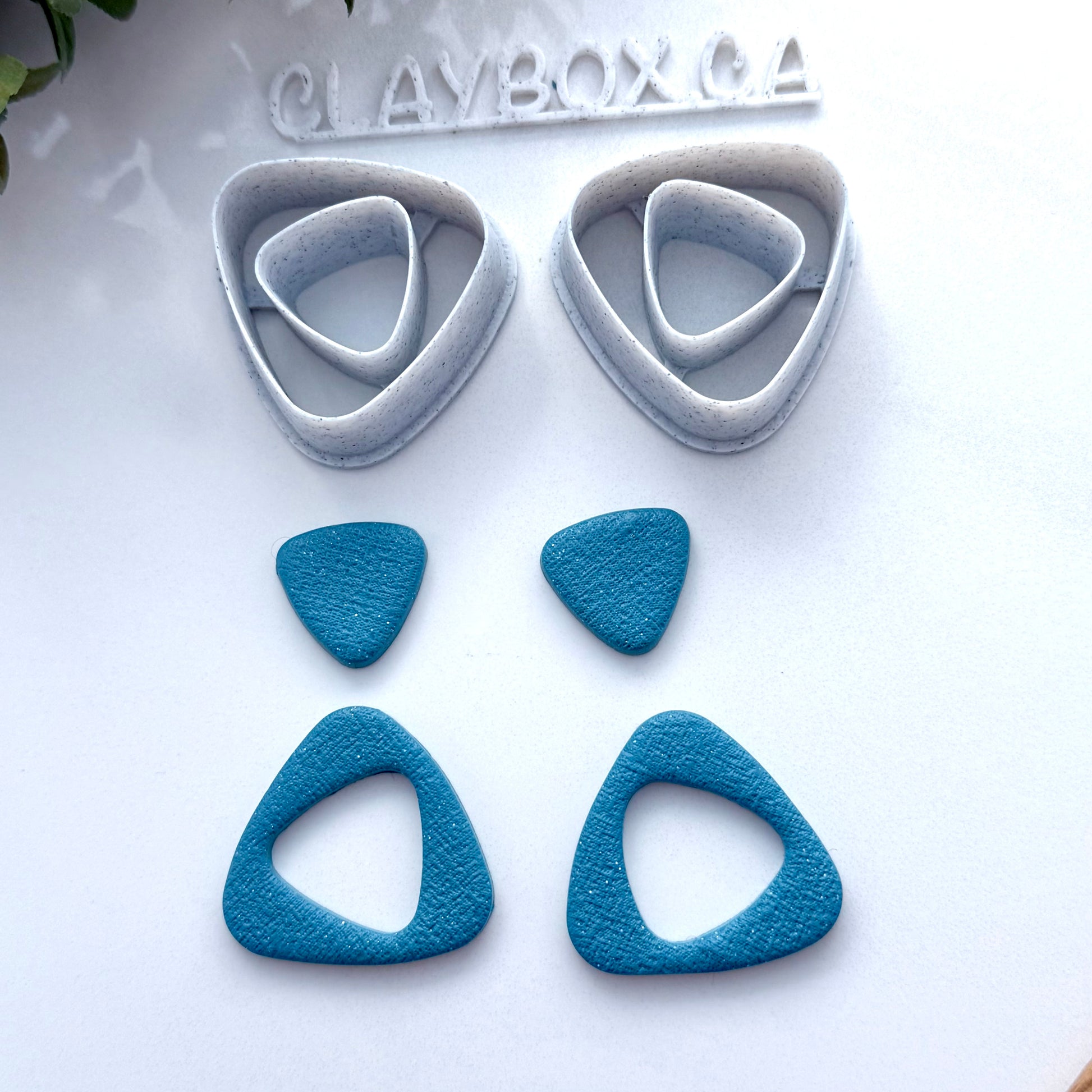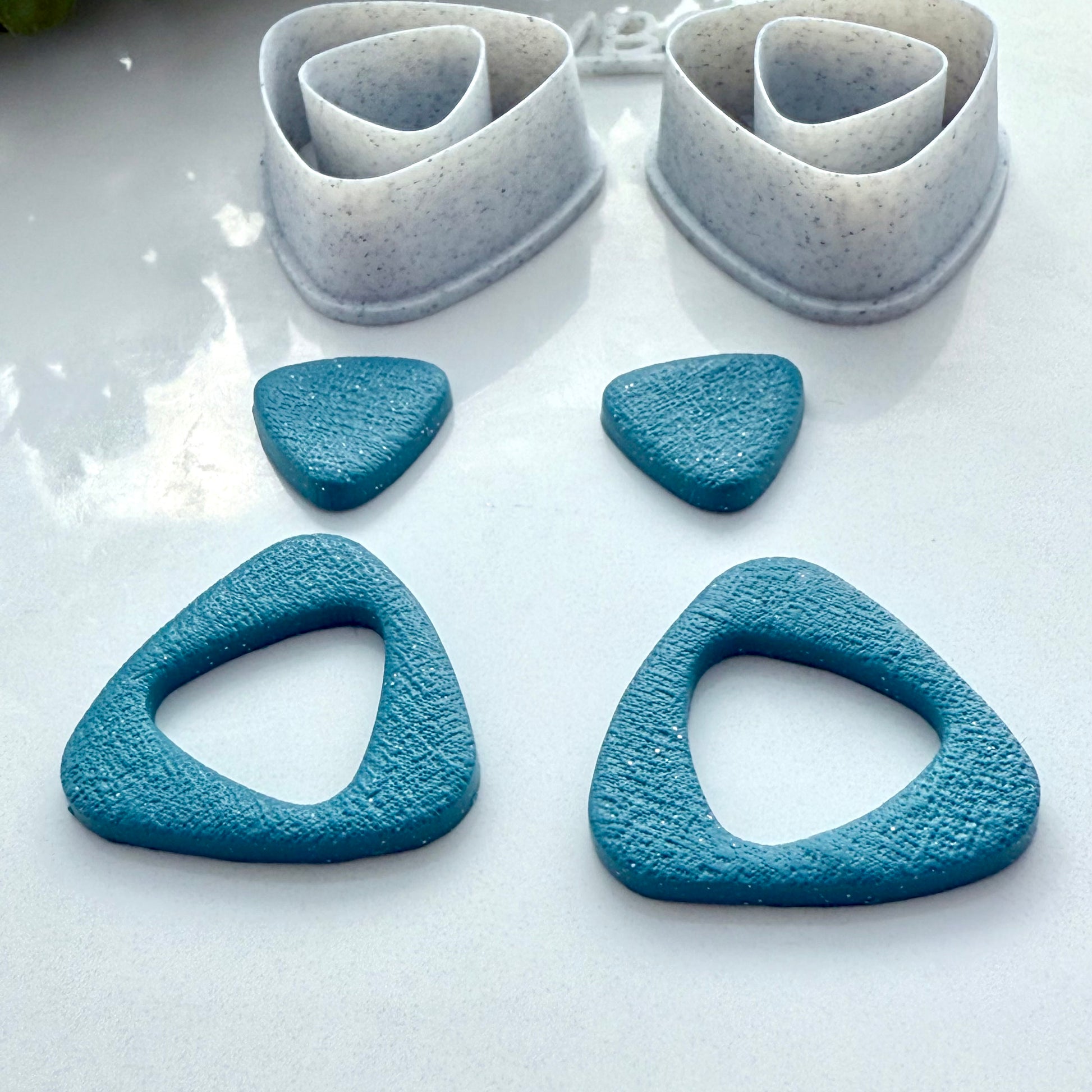 Create striking, modern polymer clay earrings with this twisted triangle donut cutter pair. Designed for clean, professional results, this cutter creates a unique geometric cutout shape. Ideal for statement earrings, layered looks, or mixed media pieces.